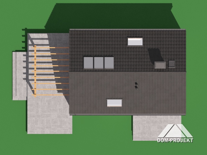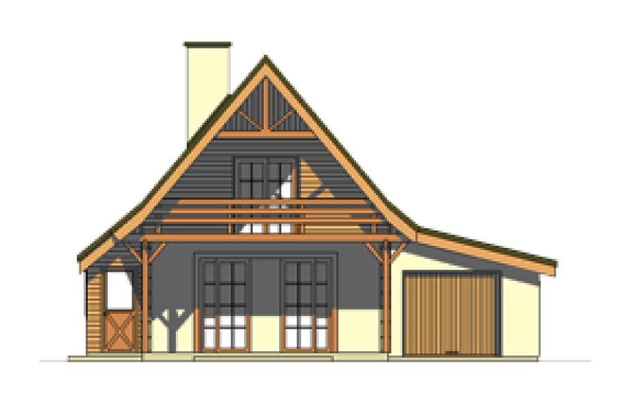 Francik z tarasem to nieduży domek o prostej, niedrogiej bryle, przekryty dwuspadowym dachem z dobudowanym zadaszonym tarasem. Ozdobą domu jest taras o powierzchni ponad 12 m2 stanowiący przedłużenie salonu. Na parterze prócz pokoju dziennego z kominkiem zaprojektowano również kuchnię, łazienkę i pomieszczenie gospodarcze dostępne z zewnątrz. Na poddaszu mieszczą się dwie sypialnie. Pracownia posiada projekt w wersji bez tarasu zadaszonego - w technologii murowanej i drewnianej.