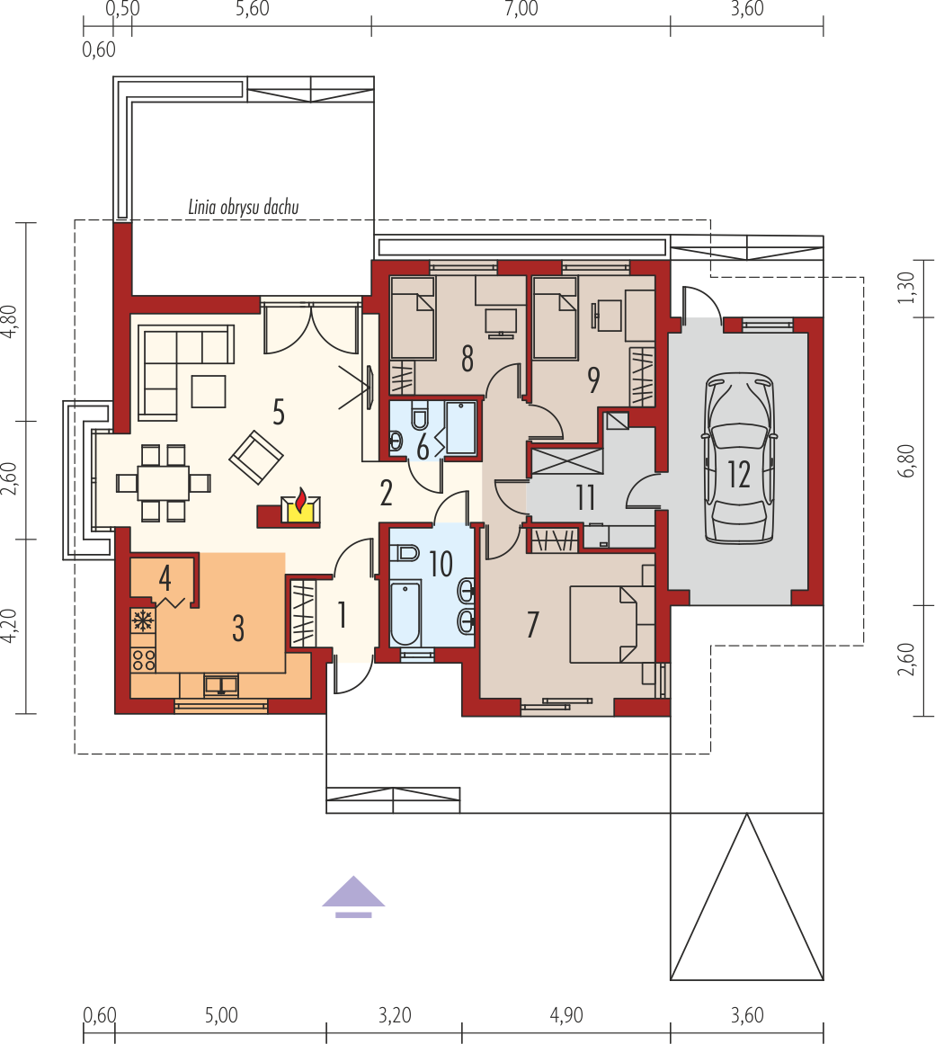 Kolekcja ECONOMIC została zaprojektowana z troską o ekonomiczny charakter budowy. Prosta bryła i konstrukcja oraz ograniczona ilość detali architektonicznych sprawia, że domy z kolekcji ECONOMIC są tanie w realizacji i późniejszej eksploatacji. Charakterystyka: Dom parterowy, niepodpiwniczony, z garażem jednostanowiskowymPrzeznaczenie: Dom dla 2-4-osobowej rodzinyTechnologia i konstrukcja:Ściany zewnętrzne: murowane, dwuwarstwowe, beton komórkowy 24 cm, ocieplenie wełna mineralna 12 cmŚciany wewnętrzne: nośne i działowe murowane,cegła wapienno-piaskowa 24 cm i 12 cmStrop: gęstożebrowy Teriva, ocieplenie wełna mineralna 30 cmDach: konstrukcja drewniana, dachówka ceramiczna lub cementowa Rozwiązania instalacyjne:Ogrzewanie: kocioł gazowy kondensacyjny, rozprowadzenie ciepła: grzejnikiWentylacja: grawitacyjna Wykończenie:Elewacje: tynk cienkowarstwowy mineralny w kolorze żółtym, okładzina drewnianaStolarka: drewniana, PVC lub aluminiowa, drzwi wejściowe i brama garażowa firmy HörmannWersje - zapytaj o dostępność:- Franczi – podobny układ funkcjonalny, inna geometria dachu- Franczi II – podobny układ funkcjonalny- Franczi II (wersja A) ECONOMIC – taki sam układ funkcjonalny- Franczi III (wersja A) ECONOMIC– taki sam układ funkcjonalny, system zabudowy ścian działowych i sufitów podwieszonych Rigips, więźba dachowa w systemie prefabrykacji drewnianej- każda wersja z inną propozycją wykończenia elewacji- do każdej wersji różne warianty garaży: bez garażu, z garażem jedno- lub dwustanowiskowym- odbicie lustrzane do każdej wersji Istnieje techniczna możliwość:- podpiwniczenia budynku- zmiany kąta nachylenia dachu do 30º oraz adaptacji poddasza na strych- wykonania budynku w technologii szkieletowej