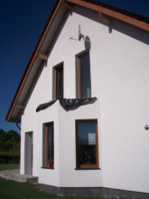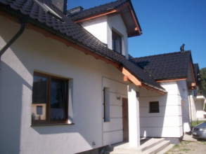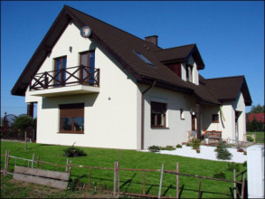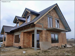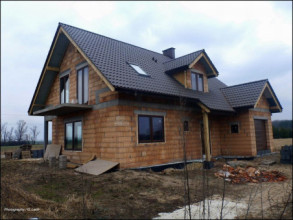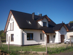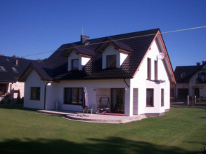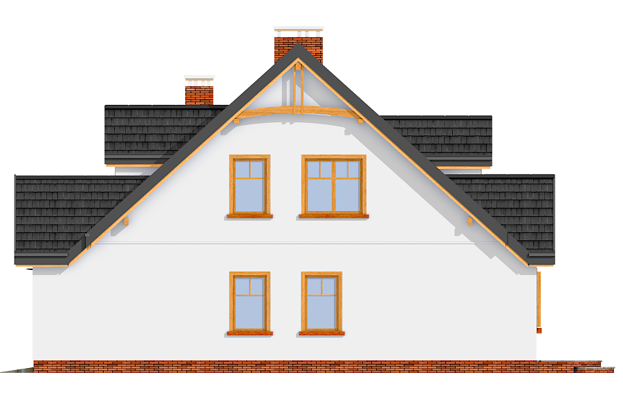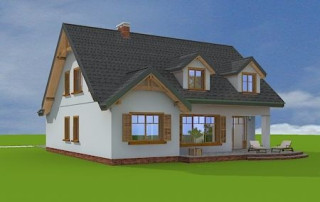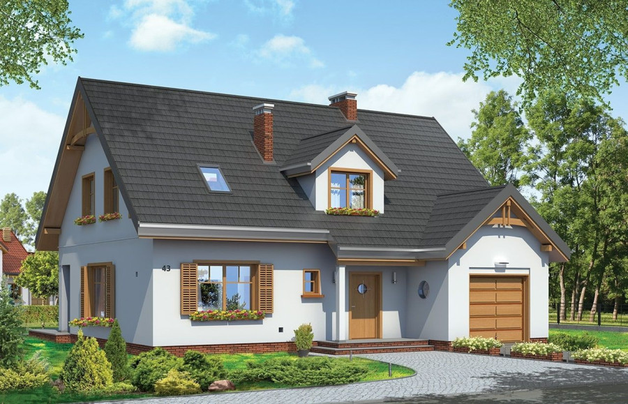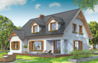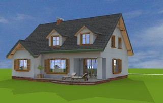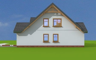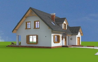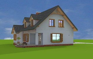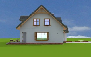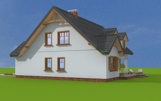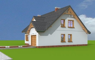 Projekt domu Cukiereczek to sympatyczny domek jednorodzinny dla rodziny 4- 6-osobowej. Cukiereczek to parterowy dom z poddaszem użytkowym, przekryty dwuspadowym dachem, częściowo wbudowanym w bryłę garażem. Architektura Cukiereczka stanowi połączenie skromnego, oszczędnego w detale wyglądu zewnętrznego, z jednoczesnym zachowaniem ludzkiej skali bryły. Projekt domu Cukiereczek charakteryzuje się funkcjonalnym, logicznie zaplanowanym wnętrzem. Na parterze zaprojektowano obszerny salon z częściowo oddzieloną jadalnią, z której jest połączenie z półotwartą kuchnią i wyjście do podcienia ogrodowego i na taras. W salonie przewidziano miejsce na wbudowany w ścianę kominek. Z salonu widoczne są także częściowo schody, zaczynające swój bieg w holu - tuż przy wejściu. Na parterze zaplanowano też dodatkowy pokój - gabinet lub sypialnię gościnną, oraz część gospodarczą, z garażem i kotłownią. Na poddaszu zaprojektowano trzy duże sypialnie, w tym sypialnię rodziców z dużą garderobą, oraz bardzo ładną rodzinną łazienkę z kącikiem na pralnię i suszarnię. Pracownia posiada wersję odbicia lustrzanego projektu domu Cukiereczek.