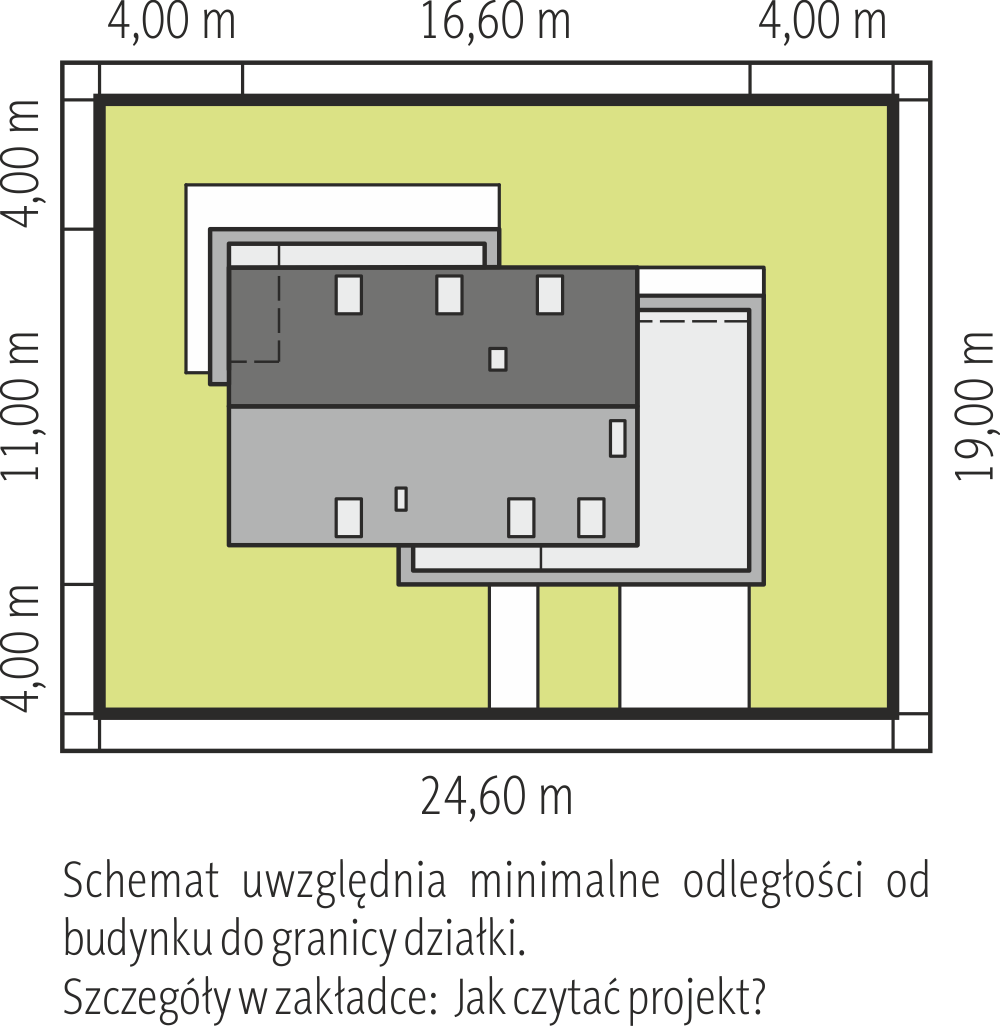 Parter zajmuje jednoprzestrzenne połączenie kuchni, salonu i holu skierowane na ogród. W części frontowej znajduje się gabinet i łazienka. Garaż dostępny z holu uzupełnia od strony ogrodu pomieszczenie gospodarcze. Na poddaszu rozlokowano 3 sypialnie z balkonami dla 4 osób oraz obszerną łazienkę. Z półpiętra dostępne jest wygodne pomieszczenie hobby nad garażem. Dom złożony z budynku głównego i dostawionej do szczytu niższej części garażowej. Przeznaczony został do zabudowy bliźniaczej przez połączenie garażami. Obie części przekryte są dwuspadowymi dachami o tym samym kącie nachylenia połaci. Dwie duże lukarny akcentują: od frontu wejście, a od ogrodu wyjście na taras. Fryda Duo o powierzchni użytkowej 131m2 została zaprojektowana tradycyjnie i z umiarem. Zręczne proporcje bryły i klarowny schemat funkcjonalny to jej główne atuty i jednocześnie najczęściej poszukiwane zalety każdego domu jednorodzinnego.