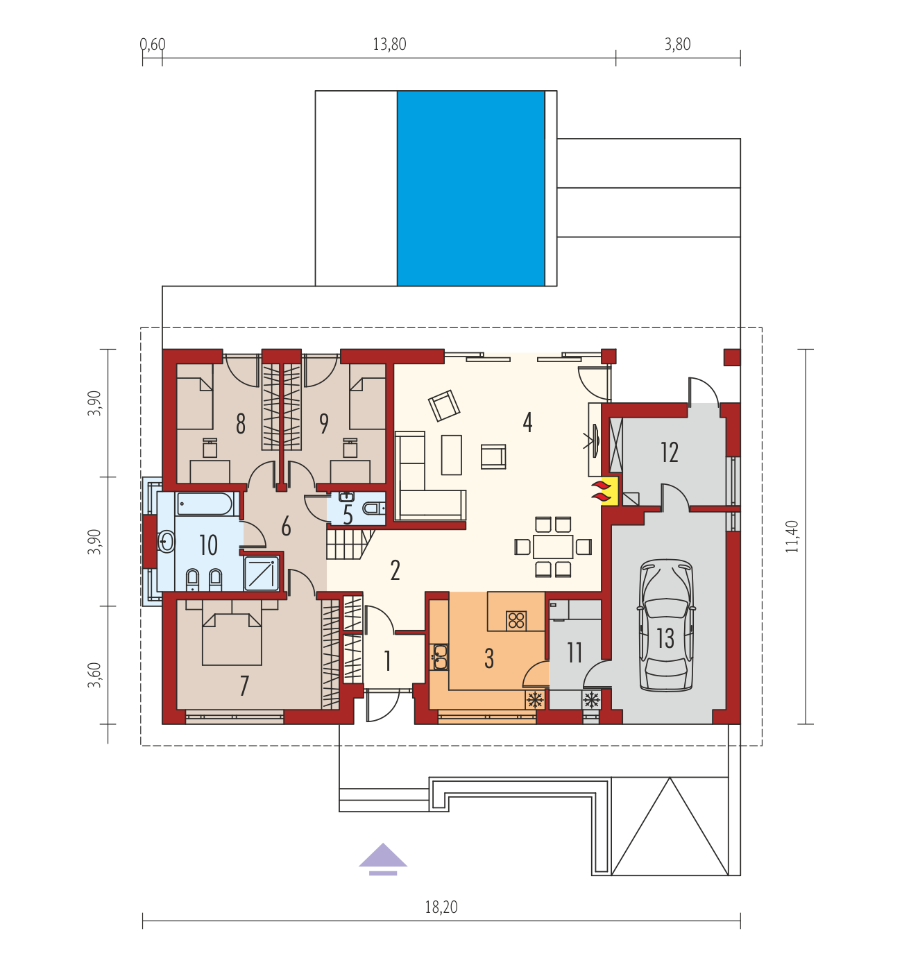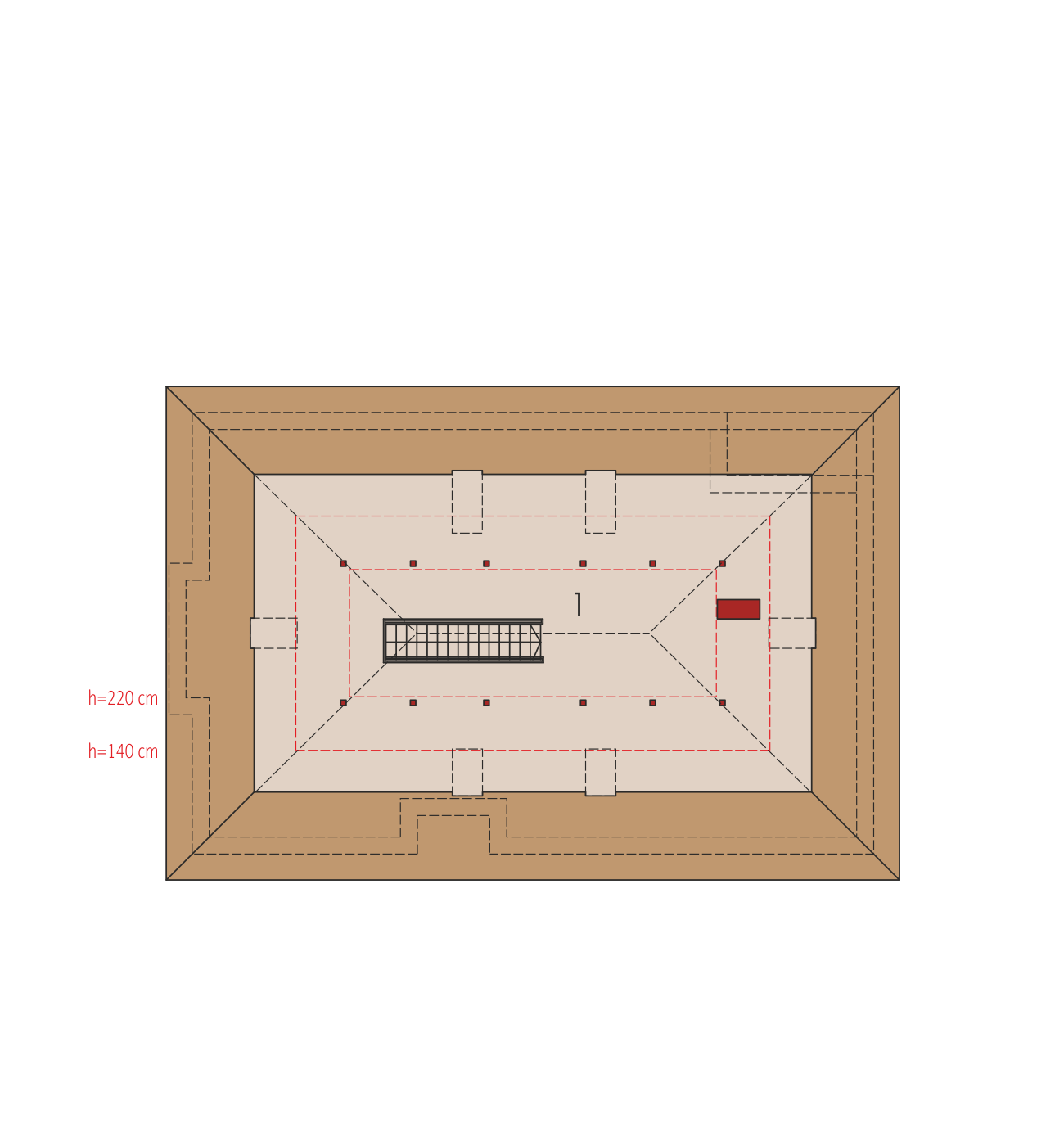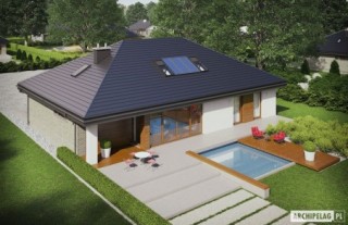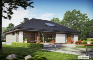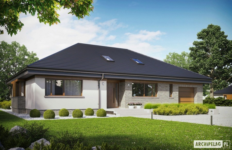 Charakterystyka: Dom parterowy z poddaszem do adaptacji, niepodpiwniczony, z garażem jednostanowiskowym Przeznaczenie: Dom dla 3-4 osobowej rodzinyTechnologia i konstrukcja: Fundamenty: ławy, pustaki keramzytobetonowe 24 cm, ocieplenie styropian 15 cm Ściany zewnętrzne: murowane, dwuwarstwowe, pustaki keramzytobetonowe gr. 24 cm Podłoga na gruncie: płyta betonowa, ocieplenie styropian 15 cm Strop: gęstożebrowy Teriva Dach: konstrukcja drewniana, ocieplenie wełna mineralna 30 cm, dachówka płaska lub inna o podobnych parametrachRozwiązania instalacyjne:Ogrzewanie: kocioł gazowy kondensacyjny, rozprowadzenie ciepła: grzejnikiWentylacja: grawitacyjnaWykończenie:Elewacja: tynk cienkowarstwowy mineralny i okładzina z płyty HPL z naturalną okleiną drewnianą firmy Prodema oraz okładzina klinkierowa Stolarka: drewniana, PCV lub aluminiowa, drzwi wejściowe i brama garażowa firmy HörmannOtoczenie: system tarasowy ProDeck - deska kompozytowa Terra w kolorze złoty dąbWersje - zapytaj o dostępność: - Gabriel G1 ENERGO – inna aranżacja pomieszczeń, inne wykończenie elewacji - Odbicia lustrzane do wszystkich wersji Istnieje techniczna możliwość:- podpiwniczenia budynku- wykonania budynku w technologii szkieletowej Atuty projektu okiem architekta: - Znakomite parametry cieplne - Funkcjonalne i kompaktowe wnętrze - Kuchnia z praktycznym pomieszczeniem gospodarczym - Reprezentacyjny salon z kominkiem oferujący wiele możliwości aranżacji - Trzy przestronne sypialnie, z których dwie mają wyjście na taras - Funkcjonalne szafy wnękowe - Duże przeszklenia od strony ogrodu - Częściowo zadaszony taras dostępny z salonu oraz kotłowni - Wygodny podcień przy wejściu do budynku jako osłona przed wiatrem i śniegiem - Subtelna kompozycja elewacji w ciepłym kolorze beżu, szarości i bieli - Garaż oddzielony termicznie od ogrzewanej części budynku - Duże pomieszczenie kotłowni pozwala na zastosowanie dowolnego źródła ogrzewania