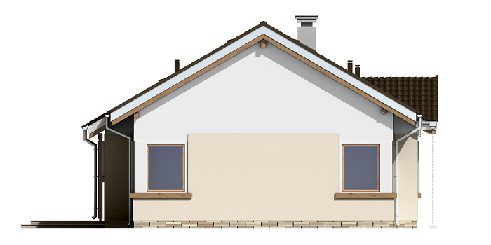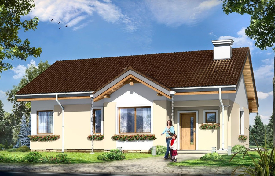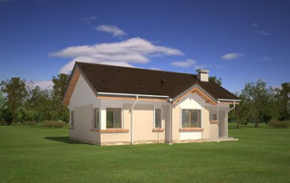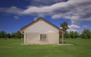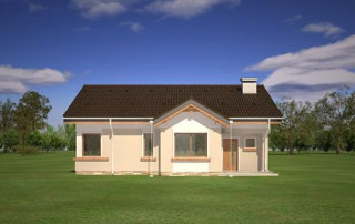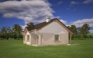 Projekt domu Cypisek 2 to powiększona wersja projektu Cypisek. Parterowy dom dla 4-osobowej rodziny, przekryty prostym, dwuspadowym dachem, z nieużytkowym strychem, który można zaadaptować na poddasze. Elewacja frontowa domu została urozmaicona narożnym podcieniem wejściowym, oraz zadaszonym wykuszem kuchni. Elewację ogrodową wzbogacają szerokie drzwi wyjściowe z salonu na taras, oraz podcień nad częścią tarasu. Cała bryła budynku - choć prosta, została ciekawie skomponowana. Tradycyjne dachy łączą się tutaj z nowoczesnym detalem i materiałami. Wnętrze parteru w domku Cypisek 2 podzielono na część dzienną i nocną - z trzema sypialniami i łazienką. W części dziennej zaprojektowano salon z narożnym kominkiem i wygodną kuchnię z kącikiem jadalnym w wykuszu. Schodki z holu prowadzą na strych nieużytkowy, który można z łatwością można zaadaptować na dodatkowe poddasze. Dostępna jest także wersja projektu Cypisek 2 w odbiciu lustrzanym. Zapraszamy do zapoznania się z pełną ofertą pracowni MG Projekt: projekt domu Cypisek, projekt domu Cypisek 2, projekt domu Cypisek 3, projekt domu Cypisek 4.