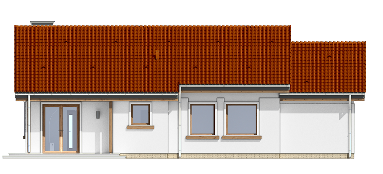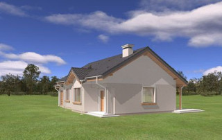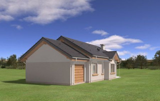 Projekt domu Cypisek 3 jest powiększoną wersję projektu Cypisek. Od wersji podstawowej różni się dobudowanym garażem. Dom przeznaczony jest dla 4- 5-osobowej rodziny. Budynek zaprojektowano jako parterowy, przekryty dwuspadowym dachem. Dobudowany z boku garaż również ma dwuspadowy dach. Nad parterem domu Cypisek 3 znajduje się nieużytkowy strych, który z łatwością można zaadaptować na poddasze użytkowe. Na parterze domu zmieszczono trzy sypialnie z łazienką, oraz - w części dziennej - salon z narożnym kominkiem i kuchnią z kącikiem jadalnym umieszczonym we frontowym wykuszu. W projekcie Cypisek 3 kotłownia zaprojektowana została obok przedsionka wejściowego. Wejście domu podkreśla zadaszony podest z narożną kolumną, oraz wykusz kuchni. Od strony ogrodu częściowo zadaszony taras stanowi przedłużenie salonu, łącząc się z nim szerokimi przeszklonymi drzwiami. Pracownia posiada wersję odbicia lustrzanego projektu Cypisek 3. Zapraszamy do zapoznania się z pełną ofertą pracowni MG Projekt: projekt domu Cypisek, projekt domu Cypisek 2, projekt domu Cypisek 3, projekt domu Cypisek 4.