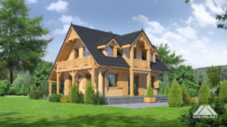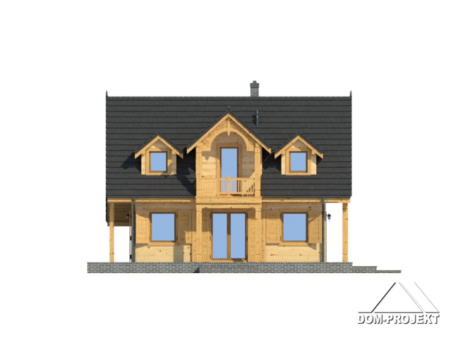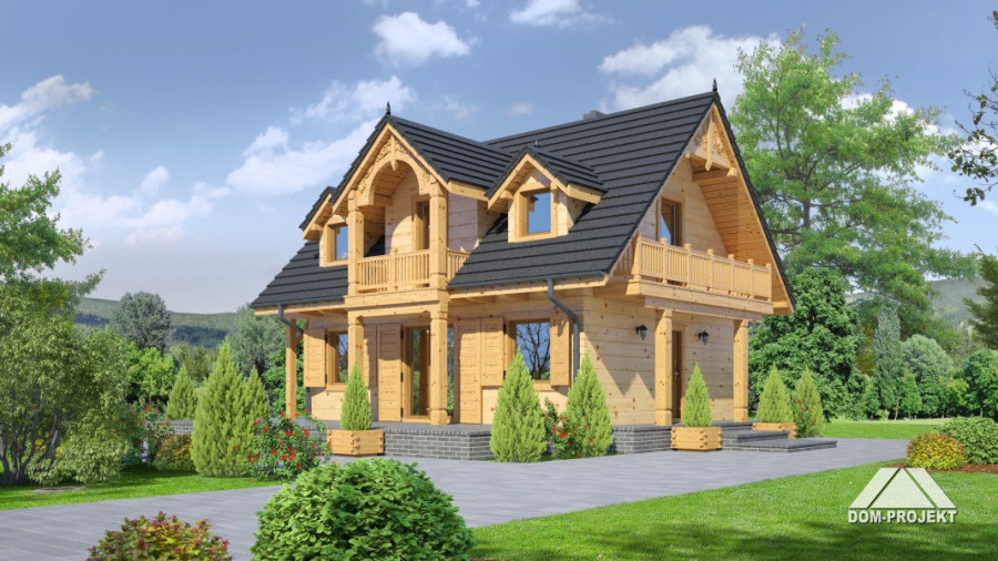 Domy wykonane z drewnianych bali wyróżniają się niepowtarzalnym klimatem. Wszyscy inwestorzy, którzy poszukują przytulnego lokum o regionalnym charakterze, powinni rozważyć propozycję Gaik sudecki dw. Pomimo prostej bryły dom nie należy do mało charakterystycznych – odpowiadają za to liczne lukarny, belki wspierające balkony oraz zdobienia rzeźbione w drewnie. Atutem domu będzie także oryginalny taras ciągnący się wzdłuż dwóch ścian budynku, dzięki któremu mieszkańcy zyskują miejsce do wypoczynku na świeżym powietrzu. Powierzchnia zabudowy wynosząca zaledwie 60,9 m2 pozwala także na efektowną aranżację ogrodu.