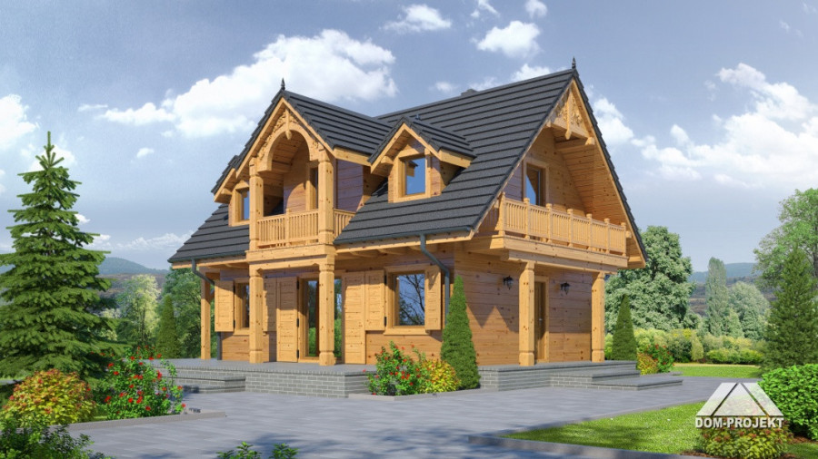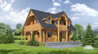 Nawet dom o niewielkiej powierzchni może wyróżniać się oryginalnym stylem - przykładem może być gotowy projekt Gaik sudecki dws. Powierzchnia zabudowy wyniosła w jego przypadku zaledwie 60,09 m2, lecz na pewno nie pozostanie niezauważony. Powstał w technologii szkieletu drewnianego, ale nawet na tle innych projektów wykonanych z tego surowca odznacza się efektownymi wykończeniami. Zdobione zwieńczenia balkonów oraz drewniane okiennice dodają mu uroku i przełamują surowość naturalnych materiałów. Dzięki stworzeniu dwóch kondygnacji osiągnięta powierzchnia użytkowa wyniosła 82.07 m2, co spełni oczekiwania czteroosobowej rodziny. Dwa poziomy to także sprawdzony sposób, by oddzielić od siebie dwie kluczowe strefy - dzienną oraz sypialną. Na parterze rodzina wspólnie