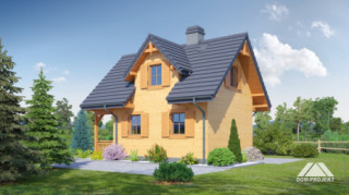 Drewniany dom współgrający z podmiejskim krajobrazem to marzenie wielu osób. Projekt Gajowo 68 dws będzie interesującą propozycją dla wszystkich, którzy poszukują tego rodzaju rozwiązań, a niewielka powierzchnia jest dla nich plusem ze względu na koszty budowy czy wielkość działki. Budynek będzie nie tylko komfortowym domkiem letniskowym, ale dla dwuosobowych rodzin może nawet posłużyć jako rozwiązanie całoroczne. Prostą bryłę uzupełnia ciekawy ganek, który powstał dzięki zabudowaniu przestrzeni pod balkonem. W ten sposób korzystanie z uroków okolicy i relaks na zewnątrz będą jeszcze łatwiejsze.