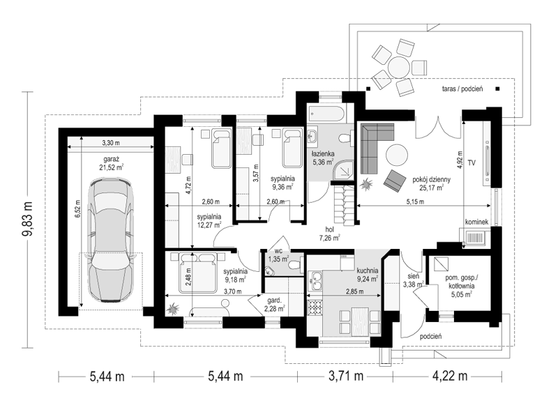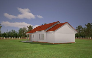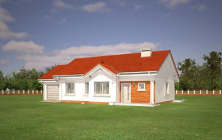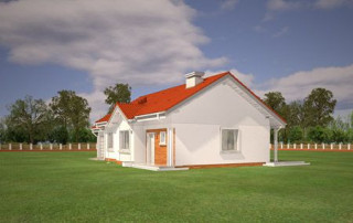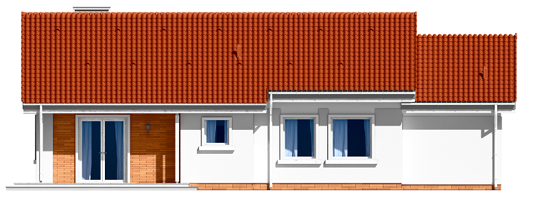 Projekt domu Cypisek 4 to kolejna wersja popularnego projektu Cypisek. Parterowy dom dla 4-osobowej rodziny, przekryty prostym dwuspadowym dachem, z nieużytkowym strychem, który można zaadaptować na poddasze. Elewacja frontowa została ładnie urozmaicona narożnym wejściem, oraz zadaszonym wykuszem kuchni. Elewację ogrodową wzbogacają szerokie drzwi wyjściowe z salonu na taras, oraz podcień nad częścią tarasu. Cała bryła domu Cypisek 4 - choć prosta, została ciekawie skomponowana. Tradycyjne dachy łączą się tutaj z nowoczesnym detalem i materiałami. Wnętrze parteru podzielono na część dzienną i nocną - z trzema sypialniami i łazienką. W części dziennej zaprojektowano salon z narożnym kominkiem i wygodną kuchnię z kącikiem jadalnym w wykuszu. W wygodnej kotłowni znajdzie się miejsce na kocioł gazowy, ale również zamiennie na kocioł na paliwo stałe. Schodki z holu prowadzą na strych nieużytkowy, który można dość łatwo zaadaptować na dodatkowe poddasze. Pracownia posiada wersję projektu domu Cypisek 4 w odbiciu lustrzanym. Zapraszamy do zapoznania się z pełną ofertą pracowni MG Projekt: projekt domu Cypisek, projekt domu Cypisek 2, projekt domu Cypisek 3.