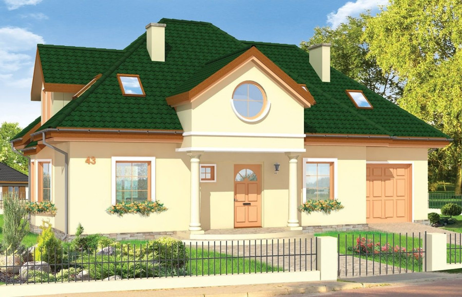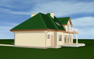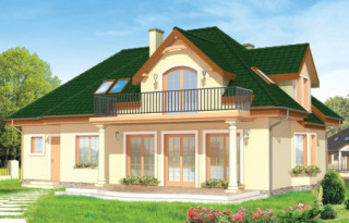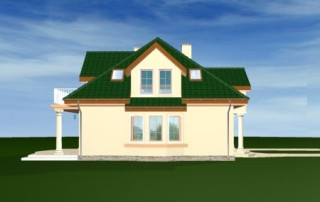 Projekt domu Saga to budynek o klasycznej architekturze, nawiązującej do dworku polskiego. Dom jednorodzinny dla rodziny 4- 5-osobowej. Projekt domu Saga posiada wielospadowy dach połączony z lukarnami, oryginalnym portykiem wejściowym z kolumnami i okrągłym oknem nadają bryle ciekawy wyraz. Detale - takie jak wykusz jadalni, duży balkon i podcień od strony ogrodu urozmaicają całość. We wnętrze domu zaprojektowano obszerny salon z kącikiem jadalnym zaakcentowanym delikatnym wykuszem. Dom Saga posiada duże przeszklenia otwierające wnętrze na taras i ogród. Częściowo otwarta kuchnia i holl powiększają powierzchnię dzienną. Na parterze mieszkania zaprojektowano dodatkowy pokój, garaż i kotłownię. Na poddaszu mieszczą się trzy sypialnie z garderobami i łazienką. Dodatkowo projekt daje możliwość zagospodarowania strychu nad garażem na pokój. Pracownia dysponuje odbiciem lustrzanym projektu domu Saga oraz inne wersje: projekt domu Saga, projekt domu Saga 2, projekt domu Saga 3.