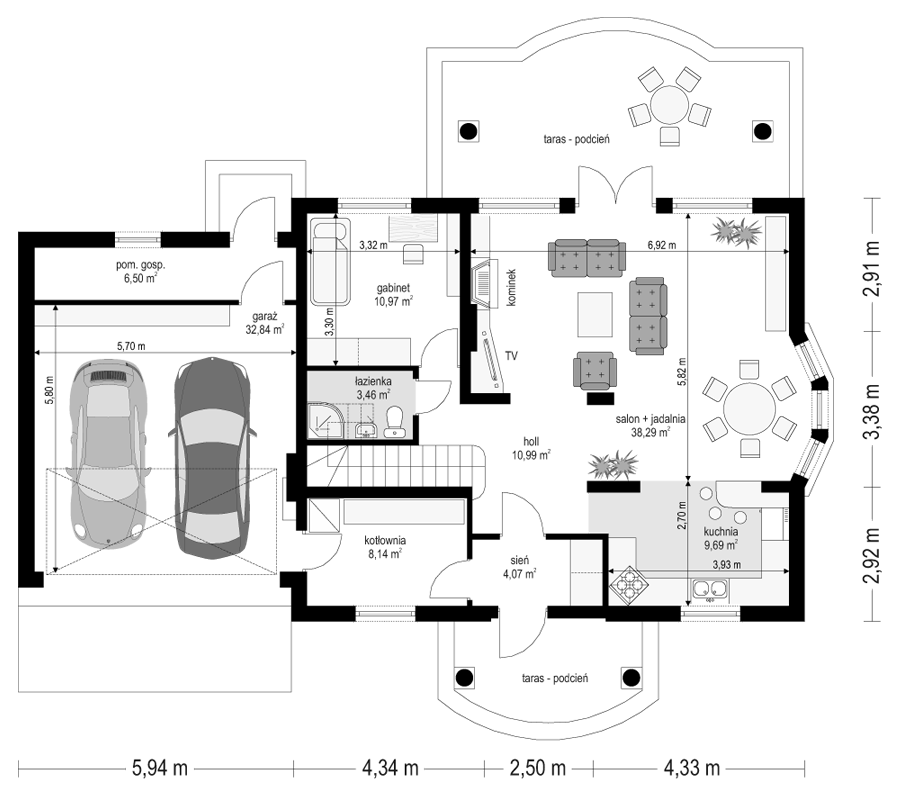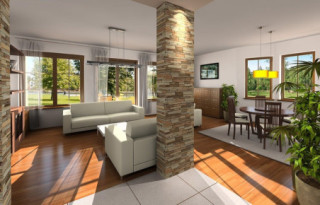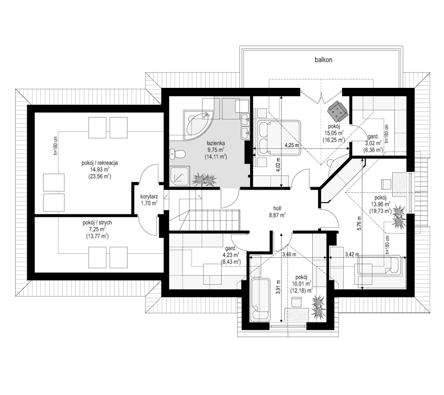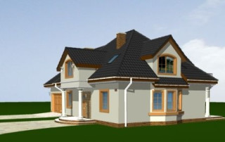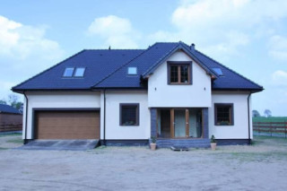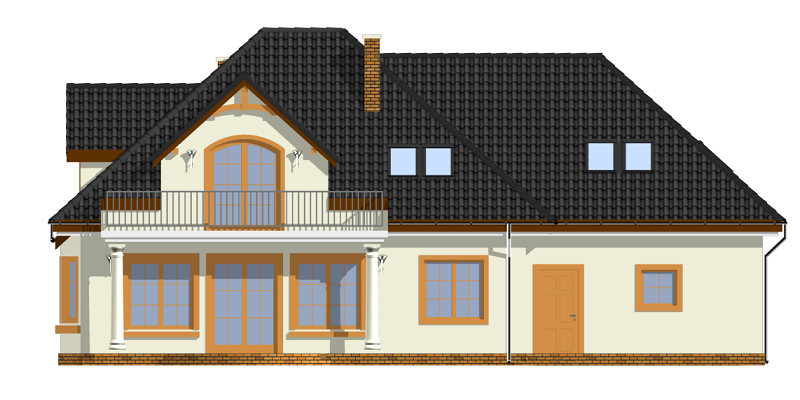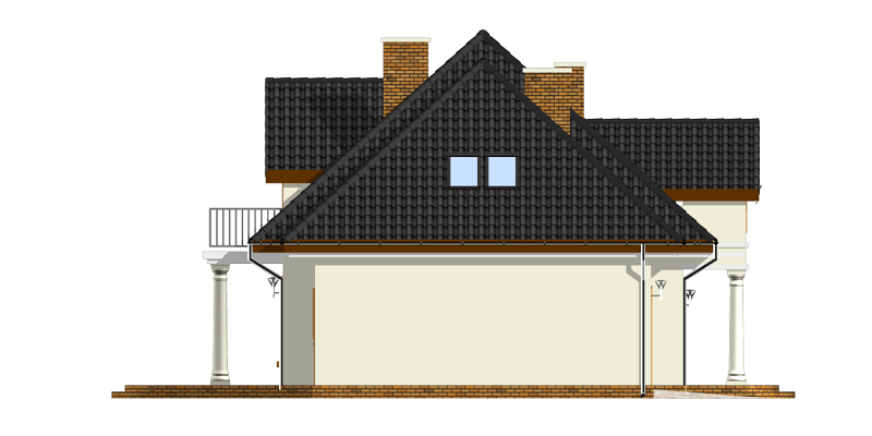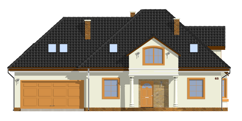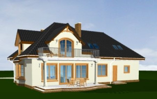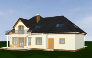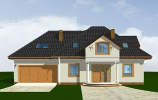 Projekt domu Saga 3, to odpowiedź naszej pracowni na życzenie wielu naszych Klientów, którzy chcieli widzieć ten domek z dwustanowiskowym garażem. Projekt domu Saga cieszy się dużą popularnością, nie mniej jednak część osób rezygnowało z niego ze względu na pojedynczy garaż. Teraz możecie Państwo wybierać między projektami Sagą z pojedynczym i podwójnym garażem. Dom ma bardzo zgrabną bryłę, główna część budynku przekryta jest czterospadowym dachem, z eleganckim frontonem wspartym na kolumnach wejściowych, oraz pięknym balkonem i lukarną od strony ogrodu. Dobudowany szerszy garaż wpływa korzystnie na proporcje domu - Saga 3 wygląda wręcz bardziej dostojnie w tej wersji. Wnętrze w projekcie nie uległo zmianie - na parterze znajduje się jednoprzestrzenny salon, połączony z holem, jadalnią i częściowo z kuchnią. Na parterze zaprojektowano dodatkowy pokój, łazienkę i kotłownię. W projekcie, za podwójnym garażem znajduje się pomieszczenie gospodarcze. Na poddaszu domu, dzięki powiększeniu przestrzeni nad garażem zmieściły się cztery pokoje z łazienką, garderobami i dodatkowo stryszkiem. Pracownia dysponuje odbiciem lustrzanym projektu domu Saga oraz inne wersje: projekt domu Saga projekt domu Saga 2, projekt domu Saga 3.