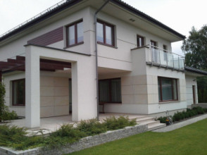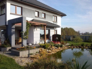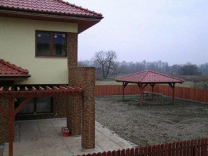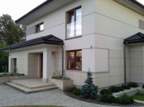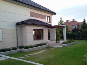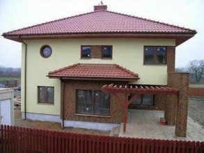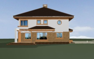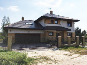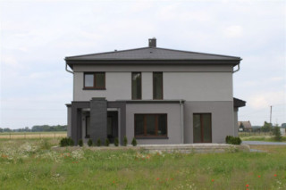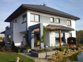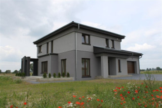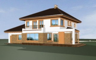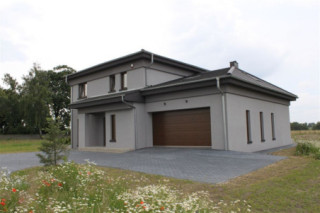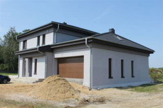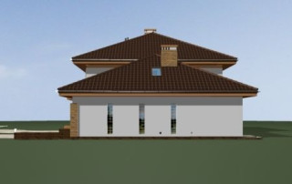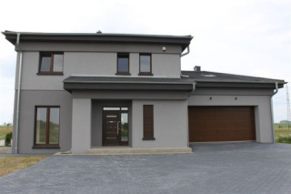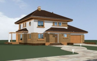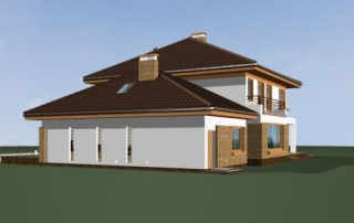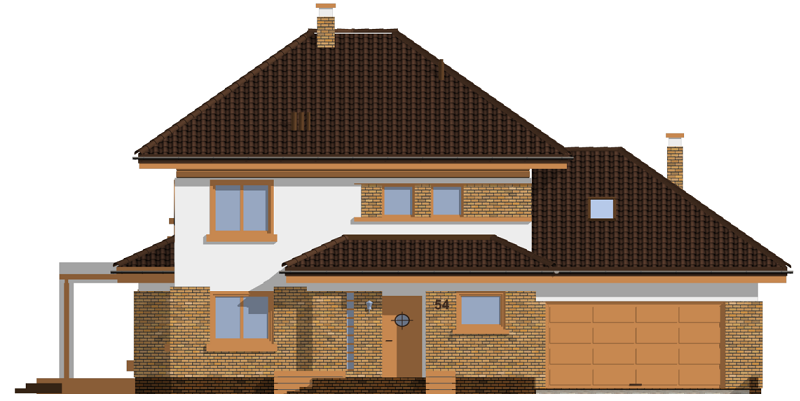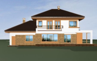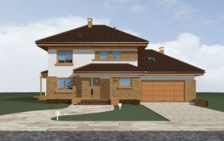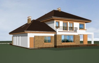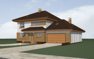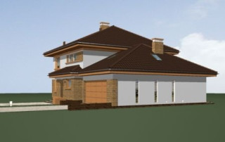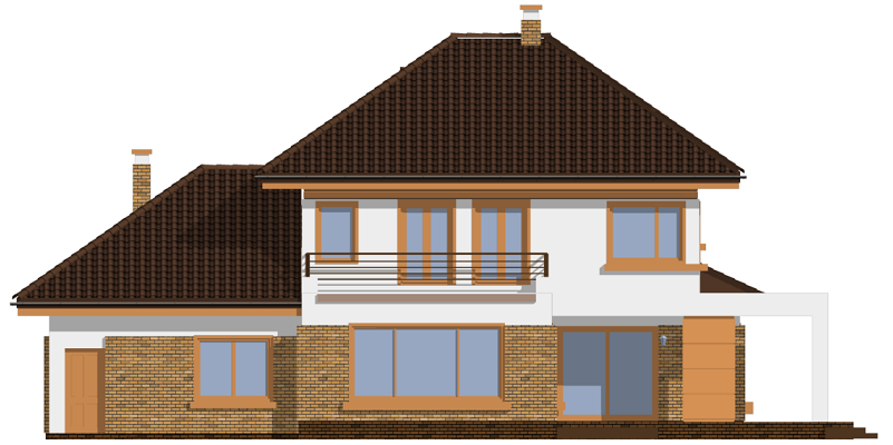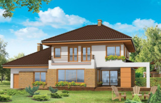 Projekt domu Słodki to uroczy, piętrowy dom dla rodziny 4- 6-osobowej. Projekt powstał przez połączenie piętrowej części mieszkalnej i parterowej ze strychem bryły dobudowanego garażu. Projekt domu Słodki architektura i wnętrze W projekcie domu Słodki to daszki, balkony, tarasy i pergole urozmaicają elewacje oszczędnej bryły. Podział ścian projektu Słodki na dwa poziome pasy obniża wizualnie piętrową sylwetkę domu. Wnętrze domu Słodki to jednoprzestrzenny parter, z salonem, jadalnią i holem. Na piętrze budynku zaprojektowano sypialnie. W projekcie domku Słodki na parterze udało się wygospodarować dodatkowy pokój mogący służyć jako gabinet, lub dodatkowa sypialnia w budynku. Na parterze budynku Słodki znajduje się również garaż i pomieszczenia techniczne. Na piętrze nad garażem domu powstała duża przestrzeń do dowolnej aranżacji. Szczególnie urokliwy jest w projekcie zadaszony taras z dużymi przeszkleniami z jadalni i salonu - stanowi on płynne przejście między wnętrzem domu a ogrodem. Projekt o powierzchni użytkowej 226,50 m2 można postawić na działce o minimalnych wymiarach: szerokość 25,27 m, długość 22,53 m. Istnieje możliwość zamówienia projektu domku Słodki w odbiciu lustrzanym.