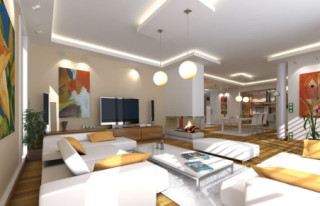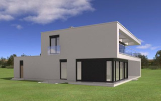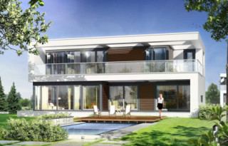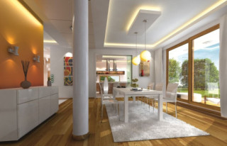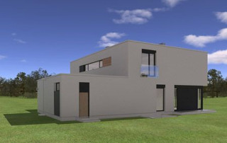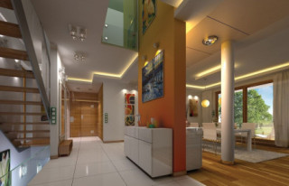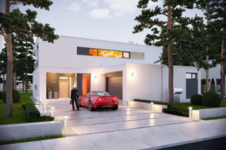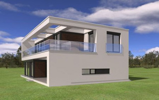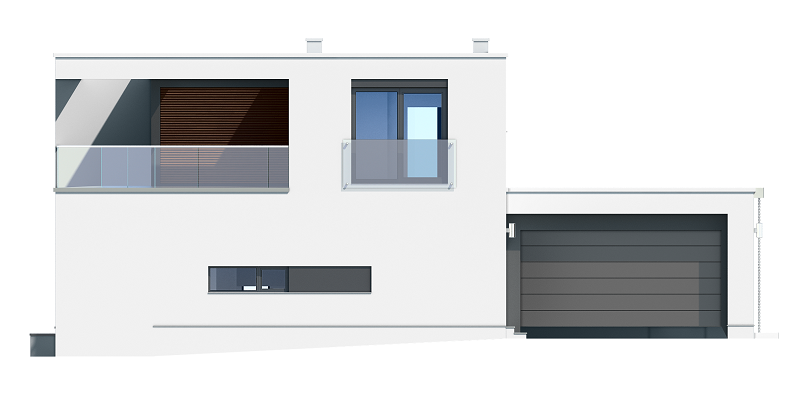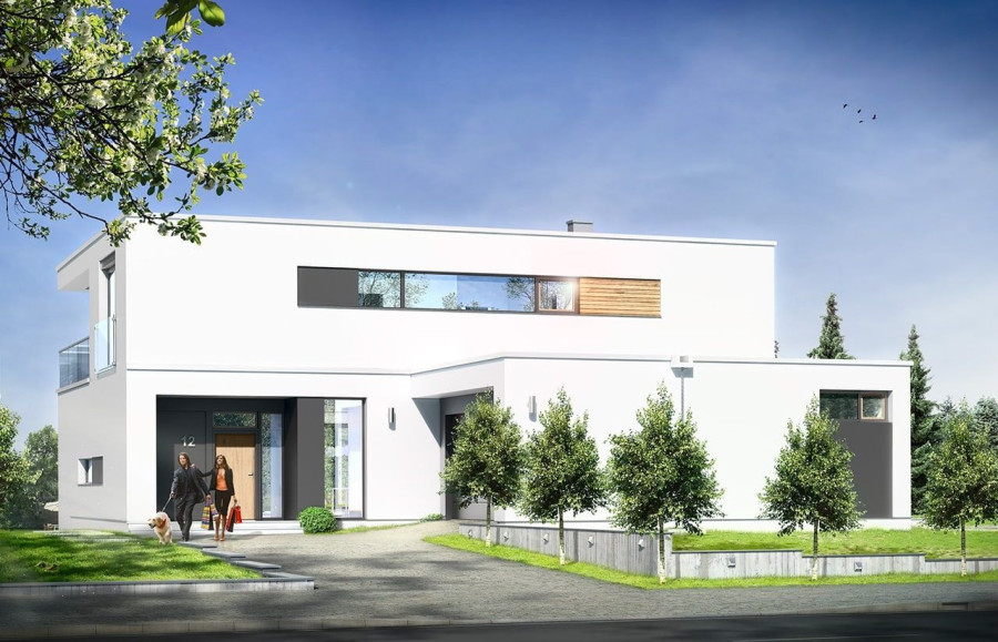 Projekt domu Willa Słoneczna to nowoczesna miejska willa. Dom przeznaczony jest dla 4- 6-osobowej rodziny. Nowoczesna piętrowa forma z płaskim dachem, została połączona z funkcjonalnym przemyślanym wnętrzem. Zasada kompozycji bryły budynku polega na maksymalnym otwarciu wnętrza domu na ogród, przy jednoczesnej minimalnej ekspozycji od strony frontowej. Elewacja frontowa, z niewielką ilością okien, z dużą białą powierzchnią ścian, jest przeciwieństwem otwartej, przeszklonej elewacji ogrodowej, urozmaiconej podcieniami i tarasami. Taki układ pozwala też na maksymalne wykorzystanie naturalnego nasłonecznienia i jednocześnie podwyższenie energooszczędności budynku. Wzajemnie przenikające się pełne białe ściany, z dużymi przeszklonymi powierzchniami, oraz drewnianymi okładzinami, wprowadzają ostre kontrasty w elewacjach domu. Siatka podciągów od strony ogrodu zamyka prostopadłościenną bryłę i jednocześnie stanowi naturalną osłonę przed nadmiernym nasłonecznieniem wnętrza. Od frontu - parterowy garaż z wjazdem z bocznego wewnętrznego dziedzińca łagodzi masywną piętrową sylwetkę domu. Wnętrze składa się z części dziennej na parterze, oraz sypialni na piętrze. Wariantowo w projekcie domu Willa Słoneczna zaplanowano częściowe podpiwniczenie z domowym spa i centrum rekreacji. Na parterze zaprojektowano jednoprzestrzenne, otwarte na ogród wnętrze połączonego salonu, jadalni, holu, oraz półotwartej kuchni. Dodatkowo mieści się tam pokój - np. gabinet, łazienka, oraz garaż i kotłownia. Pięknymi ażurowymi schodami kierujemy się z holu na piętro, gdzie zaplanowano apartament rodziców - z własną łazienką, garderobami i tarasem, sypialnie dziecięce z łazienką i dodatkowy zapasowy pokój. Oryginalne rozwiązania wnętrz, ciekawe detale, nowoczesna forma architektoniczna dadzą przyszłym użytkownikom niekłamaną przyjemność z posiadania takiego domu. Pracownia posiada projekt domu Willa Słoneczna w wersji z podpiwniczeniem lub bez piwnicy, oraz w odbiciu lustrzanym.