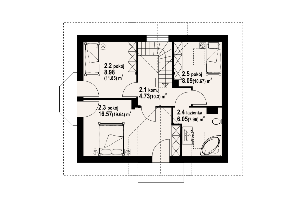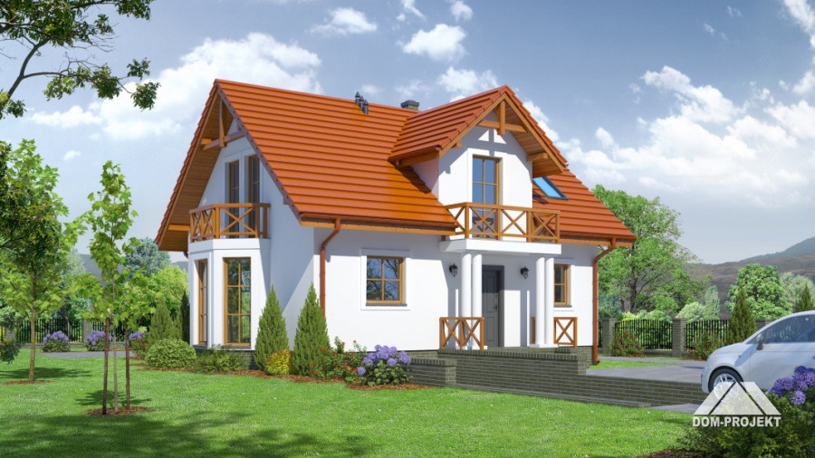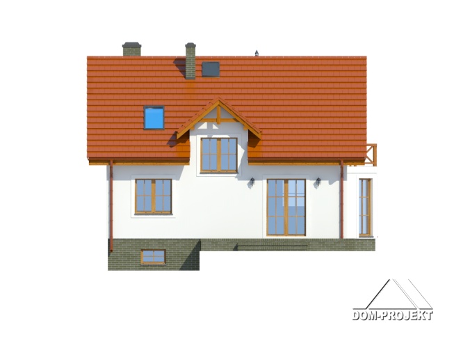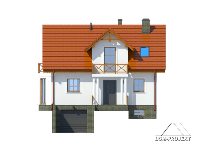 Gotowy projekt Gilowo 9 to przykład klasycznej stylistyki jednorodzinnego domu urozmaiconej oryginalnym wykończeniem w postaci drewnianych barierek balkonowych. Z powodu wykonania podpiwniczenia również podmurówka jest wyższa niż w podobnych projektach, co szczególnie przy wjeździe do garażu daje ciekawy efekt wizualny. Umieszczenie na najniższej kondygnacji pomieszczenia służącego ochronie samochodu nie powoduje również zwiększenia potrzebnej powierzchni zabudowy i nie wymaga zmiany kształtu bryły. Wszystko to sprawia, że dom Gilowo 9 będzie korzystnym wyborem dla inwestorów pragnących zaoszczędzić nieco miejsca na działce, a także oczekujących uwzględnienia w projekcie licznych pomieszczeń gospodarczych.