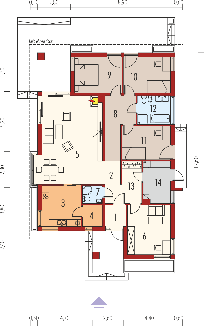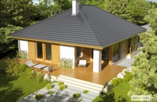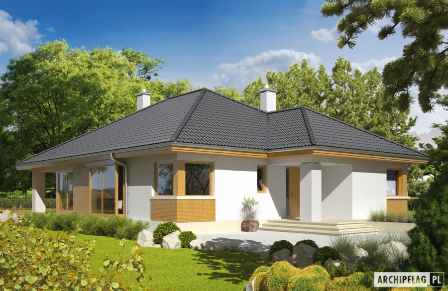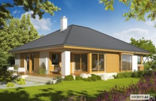 Charakterystyka: Dom parterowy, niepodpiwniczonyPrzeznaczenie: Dom dla 3-5-osobowej rodziny Technologia i konstrukcja:Ściany zewnętrzne: murowane, dwuwarstwowe, pustaki ceramiczne 24 cm, ocieplenie wełna mineralna 12 cmStrop: gęstożebrowy Teriva, ocieplenie wełna mineralna 25 cmDach: konstrukcja drewniana, dachówka ceramiczna lub cementowa Rozwiązania instalacyjne:Ogrzewanie: kocioł gazowy kondensacyjny, rozprowadzenie ciepła: grzejnikiWentylacja: grawitacyjna Wykończenie:Elewacje: tynk cienkowarstwowy mineralny w kolorze białym, np. TO-PA001 z palety firmy Termo Organika, okładzina drewnianaStolarka: drewniana, PVC lub aluminiowa, drzwi wejściowe firmy HörmannWersje - zapytaj o dostępność:- Glen – z garażem jedno- i dwustanowiskowym- Glen II - taki sam układ funkcjonalny, z dodatkową garderobą, bez garażu lub z garażem dwustanowiskowym- Glen II G1 Leca® DOM – dom w technologii Leca® KERAMZYTU- Glen II Multi-Comfort - taki sam układ funkcjonalny, dom z rozwiązaniami technologiczno-materiałowymi Grupy Saint-Gobain, różne wersje garaży- Glen III – podobny układ funkcjonalny, z poddaszem do adaptacji, kąt nachylania dachu 33°, różne wersje garaży- Glen IV – taki sam układ funkcjonalny, ścianki działowe w technologii szkieletowej Rigips, prefabrykowane wiązary dachowe, bez ścian nośnych i stopu żelbetowego, różne wersje garaży- Glen V – taki sam układ funkcjonalny, ściany zewnętrzne trójwarstwowe, wykończenie klinkierowe elewacji, różne wersje garaży- Odbicie lustrzane do każdej wersji Istnieje techniczna możliwość:- podpiwniczenia budynku- wykonania budynku w technologii szkieletowej