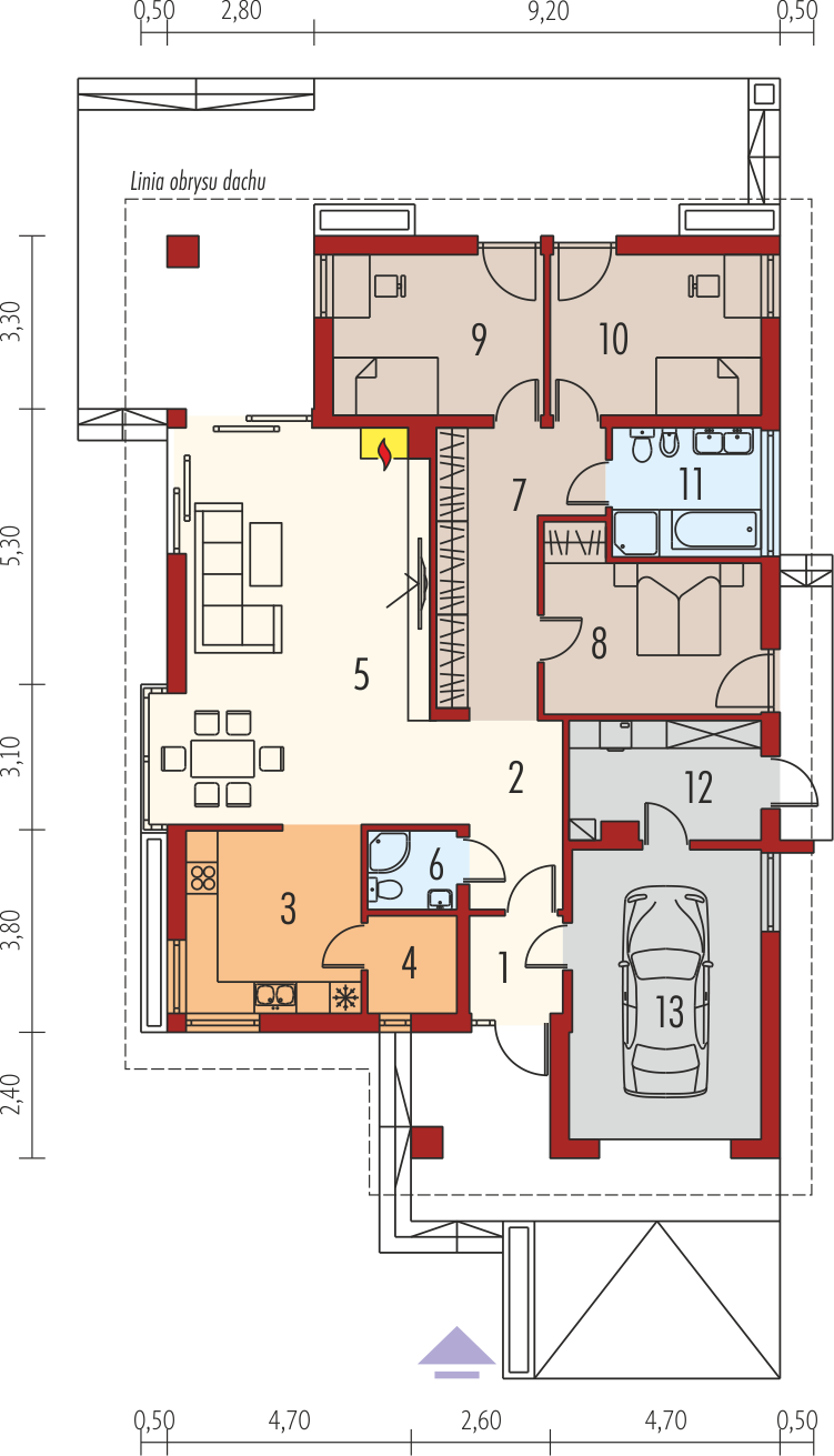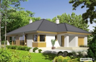 Standard MULTI-COMFORT: Dom spełnia standard MULTI-COMFORT Grupy Saint-Gobain. Komfort rozumiany jako wpływ środowiska, w którym mieszkamy na nasze samopoczucie i zdrowie. Dom realizuje tę ideę za pomocą właściwego połączenia wszystkich elementów funkcjonujących w budynku – odpowiedniego oświetlenia, właściwej wentylacji, konstrukcji ścian, dachu oraz instalacji, przy jednoczesnej trosce o środowisko naturalne. Najwyższą jakość produktów Saint-Gobain zapewniają marki: ISOVER, Rigips, Ecophon, PAM, Weber, Glass oraz Glasssolution.Charakterystyka: dom parterowy, niepodpiwniczony, z garażem jednostanowiskowym Przeznaczenie: dom dla 3-4-osobowej rodziny Technologia i konstrukcja:Ściany zewnętrzne: murowane, dwuwarstwowe, pustaki ceramiczne 24 cm, ocieplenie wełna mineralna Isover 25 cmŚciany wewnętrzne: nośne i działowe murowane,pustaki ceramiczne 24 cm i 11,5 cmStrop: gęstożebrowy Teriva, ocieplenie wełna mineralna Isover 30 cmDach: konstrukcja drewniana, ocieplenie wełna mineralna 30 cm, dachówka ceramiczna firmy Röben Rozwiązania instalacyjne:Ogrzewanie: kocioł gazowy kondensacyjny, rozprowadzenie ciepła: grzejnikiWentylacja: grawitacyjna Wykończenie:Elewacje: tynk cienkowarstwowy mineralny, okładzina z płyty HPL z naturalną okleiną drewnianą firmy ProdemaStolarka: drewniana, PVC lub aluminiowa, drzwi wejściowe i brama garażowa firmy HörmannOtoczenie: kostka betonowa firmy Libet w kolorze jasnoszarym, system tarasowy ProDeck - deska kompozytowa Terra w kolorze orzech Wersje - zapytaj o dostępność:- Glen II Multi-Comfort - bez garażu lub z garażem dwustanowiskowym - Glen – taki sam układ funkcjonalny, węższy korytarz bez garderoby, różne wersje garaży - Glen II – wersja standardowa, taki sam układ funkcjonalny, bez garażu lub z garażem dwustanowiskowym - Glen II G1 Leca® DOM – dom w technologii Leca® KERAMZYTU - Glen III – podobny układ funkcjonalny, z poddaszem do adaptacji, kąt nachylania dachu 33°, różne wersje garaży - Glen IV – taki sam układ funkcjonalny, ścianki działowe w technologii szkieletowej Rigips, prefabrykowane wiązary dachowe, bez ścian nośnych i stopu żelbetowego, różne wersje garaży - Glen V – taki sam układ funkcjonalny, ściany zewnętrzne trójwarstwowe, wykończenie klinkierowe elewacji, różne wersje garaży - Odbicie lustrzane do każdej wersji Istnieje techniczna możliwość:- podpiwniczenia budynku- wykonania budynku w technologii szkieletowej Atuty projektu okiem architekta: - Bardzo dobre parametry cieplne - Atrakcyjny wygląd zewnętrzny - Ergonomiczny i funkcjonalny układ wnętrz - Kuchnia z praktyczną spiżarnią - Reprezentacyjny, przeszklony salon z kominkiem oferujący wiele możliwości aranżacji - Atrakcyjny, częściowo zadaszony taras - Każda sypialnia posiada możliwość wyjścia bezpośrednio do ogrodu - Jadalnia ulokowana w przeszklonym wykuszu - Duża kotłownia z możliwością wyjścia na zewnątrz, która pozwala na zastosowanie dowolnego rodzaju ogrzewania