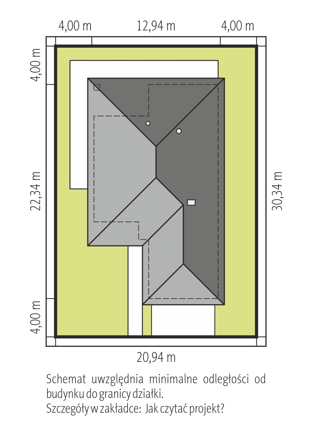 Projekt domu Gozdawa Pik należy do grupy niewielkich ale na parterze można zaaranżować wyjątkowo przestronny, podłużny pokój dzienny. Jest on zamknięty od holu i oddzielony od dużej kuchni, co docenią to osoby, które wolą tradycyjny układ mieszkania. Część mieszkalna na zwartym prostokącie obejmuje także duży hol z toaletą i wygodną sienią z przejściem do garażu i kotłowni. Strefa nocna na drugiej kondygnacji składa się z trzech sypialni, z których dwie wyposażono w spore garderoby. Symetryczne względem kalenicy dwuspadowego dachu lukarny doświetlają łazienkę i mniejszą sypialnię dodając pomieszczeniom wysokości użytkowej. Akcentują one również symetryczny rysunek elewacji i, razem z małymi balkonami w ścianach szczytowych, podkreślają bardzo zdyscyplinowaną, harmonijną budowę bryły. Projekt domu Gozdawa Pik należy do rodziny zbliżonych rozwiązań, które oferują zróżnicowany sposób wykorzystania drugiej kondygnacji (np. więcej pokoi w Gozdawie Polo), inną formę dachu (czterospadowy w Gozdawie Pik) oraz historyzujące, dworkowe detale w elewacjach. Wersję Pik wyróżnia wspornikowo podparte przedłużenie okapu nad frontowym wejściem.