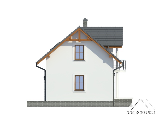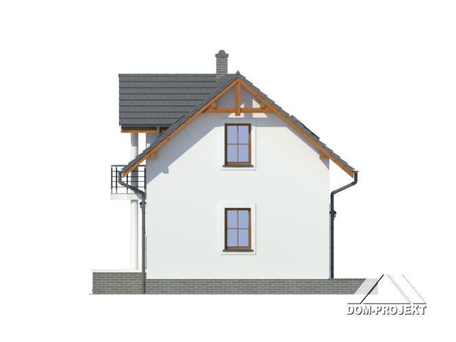 Pomimo niewielkiego rozmiaru z zewnątrz dom Gródek przypomina inne budynki o klasycznym, a jednocześnie reprezentacyjnym charakterze. Może wydawać się bardziej okazały z powodu balkonu nad wejściem oraz ozdobnych kolumn. Powierzchnia użytkowa projektu to 63,34m2, ale na planie uwzględniono wszystkie pomieszczenia, których potrzebuje mniej liczna rodzina. Dzięki temu, że powierzchnia zabudowy wynosi 48 m2, można małym kosztem zagospodarować nawet niewielką działkę.