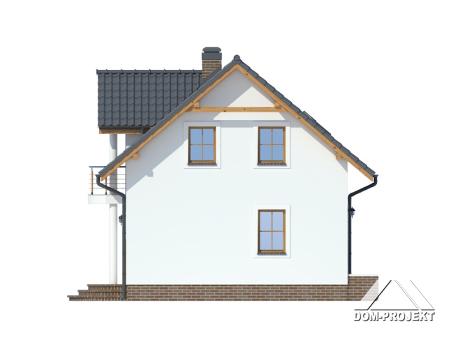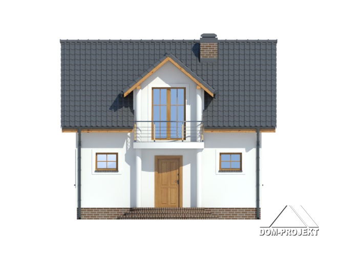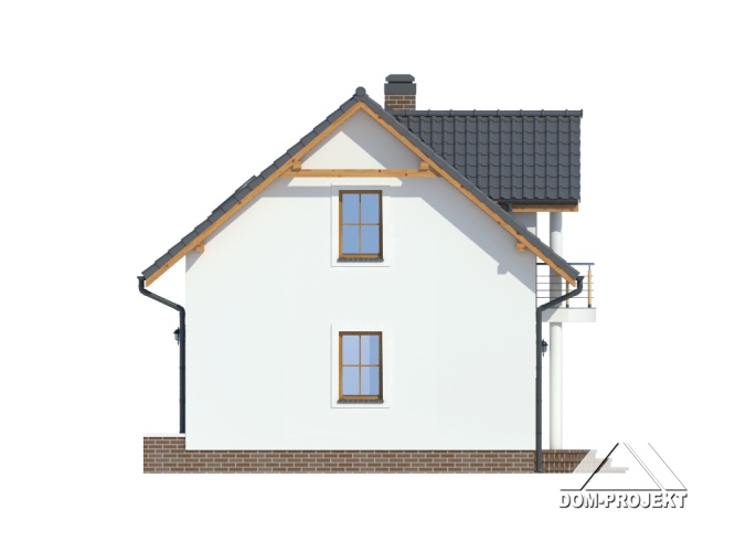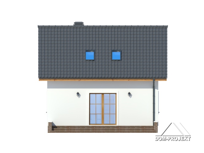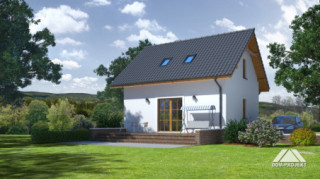 Nieduży, zgrabny domek dla dwu,- trzyosobowej rodziny. Na parterze przewidziano salon z aneksem kuchennym, oraz łazienkę. Na poddaszu dwie wygodne sypialnie i łazienka. Dom cechują niskie koszty budowy i późniejszej eksploatacji.