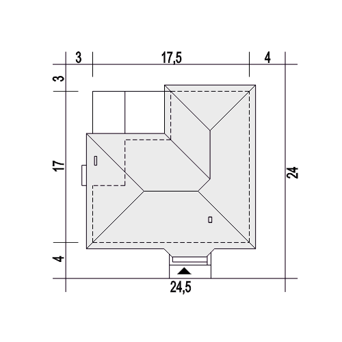 Projekt małego, energooszczędnego domu parterowego z użytkowym poddaszem ma ograniczone możliwości rozwiązań funkcjonalnych. Powierzchnia nieco ponad 90m2 i prostokątny, zwarty rzut decydują o tym, że na parterze, oprócz strefy dziennej, wc i przestrzeni komunikacji, pozostaje już niewiele miejsca. Projekt domu Gutek, należący do tej kategorii rozwiązań, proponuje, aby wykorzystać je na dodatkowy pokój przy wejściu oraz na wygodną łazienkę z kotłem gazowym. Jest to jedna z trzech podobnych koncepcji prostego, taniego budynku z dwuspadowym dachem zwróconego do wjazdu na działkę ścianą szczytową z balkonem. Pozostałe to: projekt domu Dorian z dużą kotłownią i projekt domu Gawra – z wyjątkowo dużym pokojem dziennym, z dużą kuchnią i wygodną łazienką. Projekt domu Gutek wyróżnia się wśród nich oryginalnym wnętrzem salonu ze schodami na poddasze. Brak otworów w ścianach bocznych i połaciach dachu pozwala zrealizować go na wyjątkowo wąskiej działce – tylko 14,1m! Okna w ścianach szczytowych, zwłaszcza od ogrodu są duże i kompensują doświetlenie strefy dziennej.