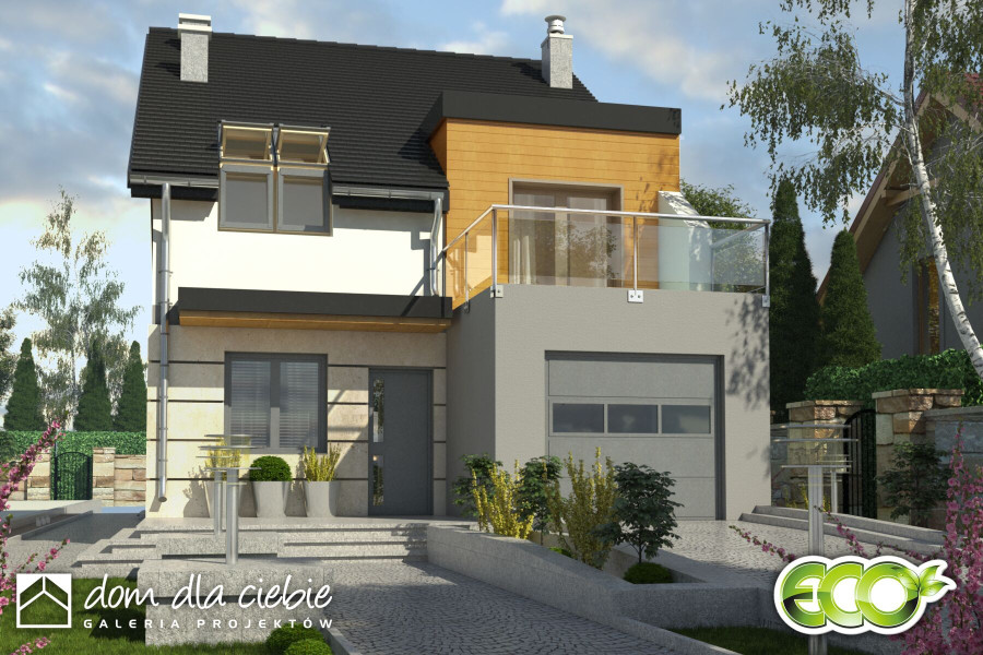 Gwarek to piętrowy dom dla 4 lub 5-cio osobowej rodziny przemyślany tak, aby zmieścił się na bardzo wąską działkę. Posiada na parterze gabinet (pokój gościnny), salon z kominkiem i z wyjściem na taras. Na parterze obok kuchni zaproponowano w projekcie spiżarnię. Pomieszczenie gospodarcze z piecem C.O. spełnia równocześnie funkcję przejścia do wygodnego garażu na jeden samochód. Ze względu na duża ilość pokoi zaprojektowano dwie duże łazienki - na każdej kondygnacji po jednej. Na pietrze znajduje się jeszcze dodatkowa garderoba. Piętro tak zaprojektowano, aby jego wysokość w najniższym miejscu nie była niższa niż 1,9m... Sprawdź inne projekty domów - Zapraszamy !fundamenty: BETONOWE ściany zewnętrzne: POROTHERM+STYROPIAN TERMO ORGANIKA ściany wewnętrzne: POROTHERM, GK rodzaj stropu: TERIVA I elewacje: TYNK STRUKTURALNY, OKŁ. DREWNIANA I KAMIENNA pokrycie dachu: DACHÓWKA CEM. lub CER.