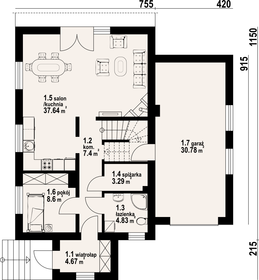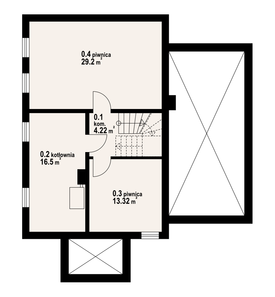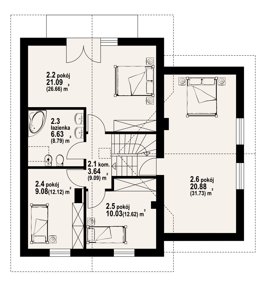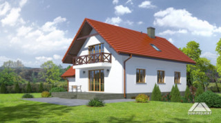 Wygodny dom jednorodzinny częściowo podpiwniczony. 6 pokoi, 2 łazienki, kotłownia, spiżarka. Duży salon z aneksem kuchennym, kominkiem i wyjściem na taras. Garaż dobudowany.Na poddaszu cztery wygodne pokoje. Główna sypialnia z balkonem. W piwnicach kotłownia i pomieszczenia gospodarcze. Zwarta bryła budynku umożliwia łatwą budowę i wpływa na niskie koszty eksploatacji.