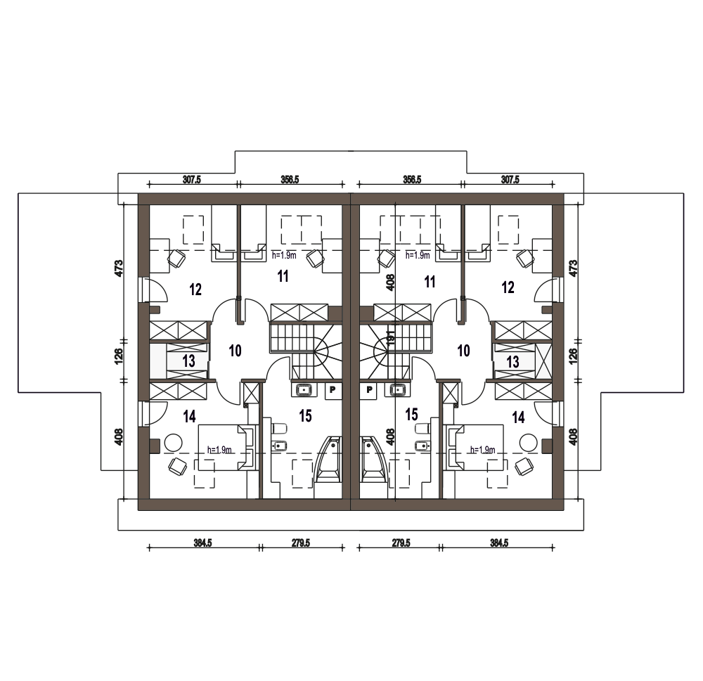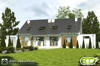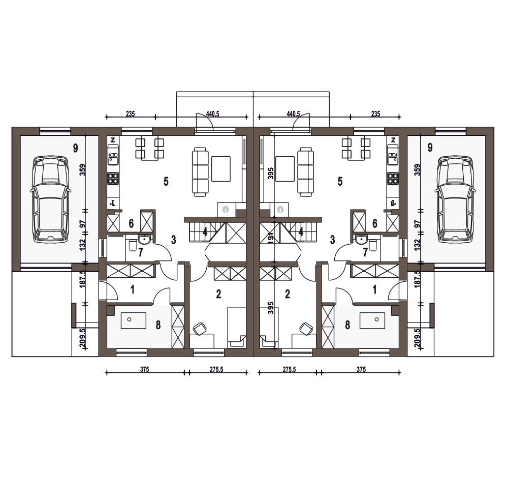 (Uwaga: projekty typu bliźniak oferujemy jako domy dwulokalowe, projekt można zamówić również w zabudowie bliźniaczej) Wariant A-BL2 to dwa segmenty z garażami połączone ścianami szczytowymi od strony salonów. Opis odnosi się do jednego segmentu.Projekt domu Głuszec jest przykładem klasycznego domu jednorodzinnego z poddaszem przeznaczonym na cele mieszkalne. Ten dwukondygnacyjny i prosty konstrukcyjnie dom jest dobrą alternatywą na wąskie działki lub do zabudowy bliźniaczej. do budynku prowadzi zadaszone wejście usytuowane z boku budynku. Połączono je z dużą wiatą przed domem. Na parterze zaproponowano strefę wspólną a także dodatkowy pokój mogacy pełnić funkcję gościnnego lub gabinetu. Z salonu z jadalnią i kuchnią można wyjść na taras i kominek. W kuchni znajdziemy spiżarnię a obok niej łazienkę. Dużą kotłownię zaprojektowano od frontu budynku. Na piętrze w projekcie zaproponowano trzy sypialnie, garderobę oraz duża łazienkę. Głuszec to dom ekonomiczny w budowie i eksploatacji. Ze względów ekonomicznych zrezygnowano z balkonów i tarasów. Zastosowane portfenetry i dodatkowo okna połaciowe sprawią, że każde pomieszczenie na poddaszu będzie doskonale doświetlone. Elewacę domu charakteryzuje delikatny detal i naturalna kolorystyka.