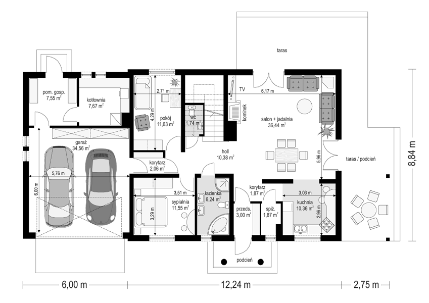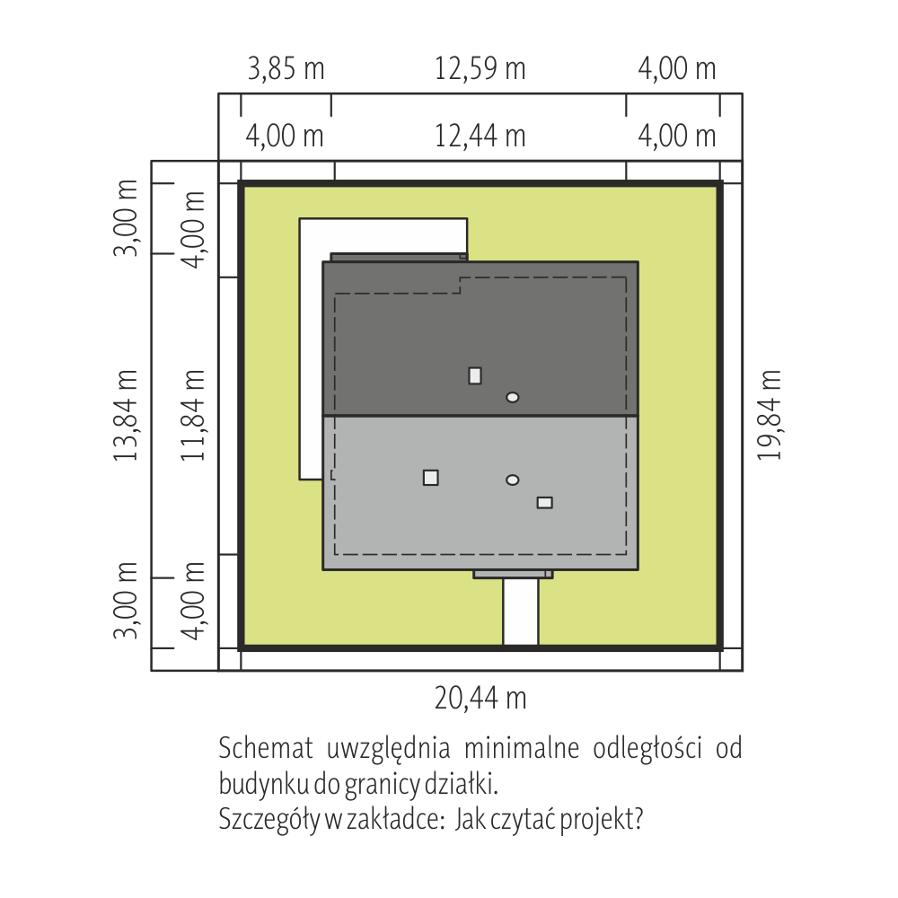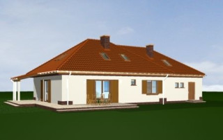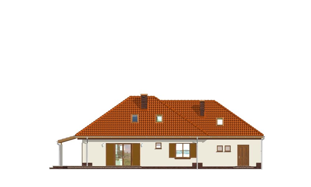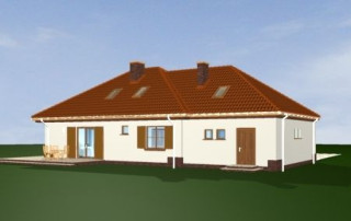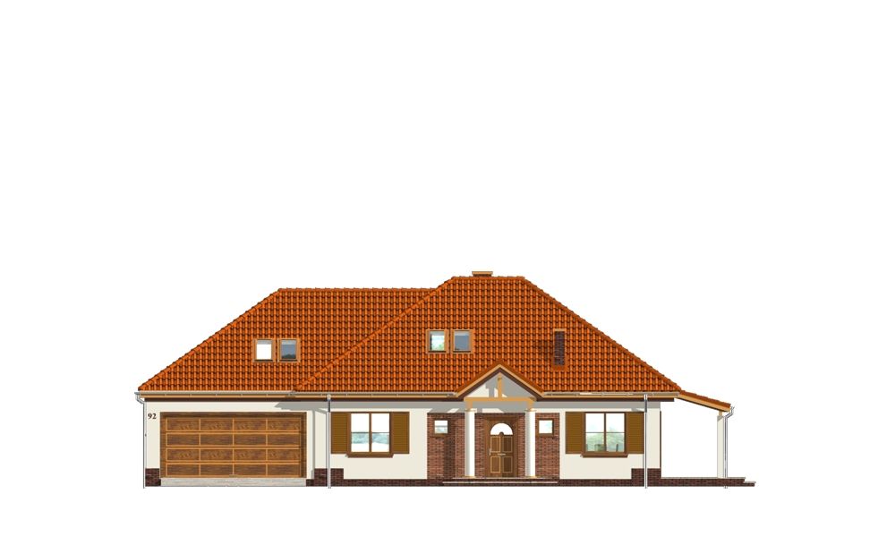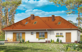 Projekt domu Cztery Kąty 3 to uroczy dom jednorodzinny, będący wariantem projektu Cztery Kąty. Tym razem projekt posiada dwustanowiskowy garaż i strych mogący być zaadaptowany na poddasze użytkowe. Dach budynku został zaprojektowany jako klasyczna krokwiowa więźba dachowa. Kąty nachylenia połaci dachowych podniesiono tak, aby na poddaszu z powodzeniem pomieściły się nawet trzy pokoje. Jednocześnie nie zrezygnowano z pokoi sypialnych na parterze tak, aby można było realizować budowę etapowo. Inwestor może zamieszkać w domu z wykończonym parterem, a strych zaadaptować w razie potrzeby. Projekt domu Cztery Kąty 3, dzięki takiemu układowi wnętrz, może również być budynkiem trzypokoleniowym - sypialnie na parterze mogą być przeznaczone dla seniorów. Zapraszamy do zapoznania się z pełną ofertą pracowni MG Projekt: projekt domu Cztery Kąty w odbiciu lustrzanym oraz kilka wersji: z garażem jednostanowiskowym (projekt domu Cztery Kąty 2), z poddaszem (projekt domu Cztery Kąty 3), bez garażu (projekt domu Cztery Kąty 4).