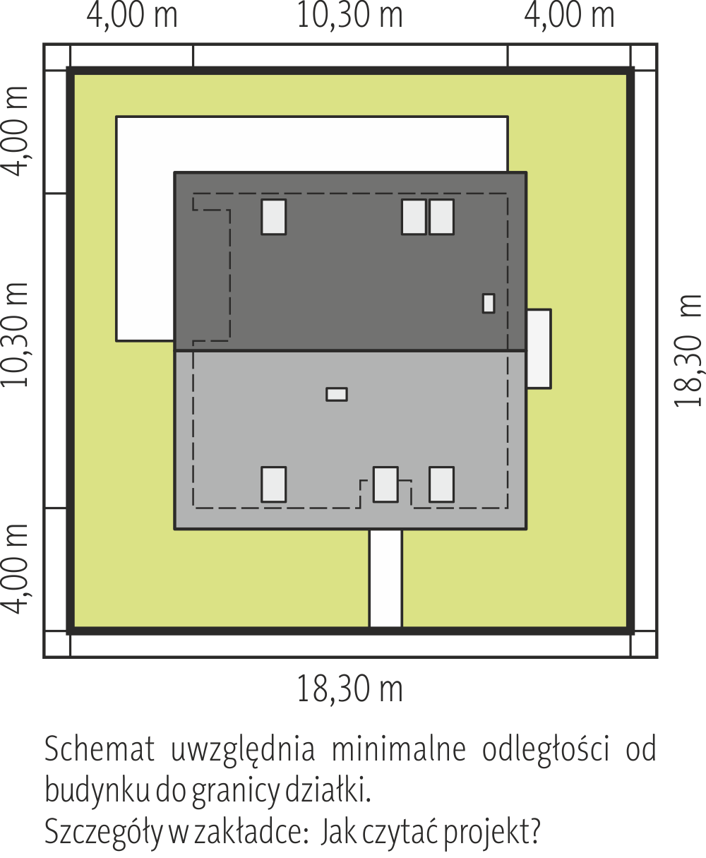 Niewielki, ale wygodny drewniany dom dla 4 – 5-osobowej rodziny. Zlokalizowana na parterze część dzienna mieści w sobie przestronny pokój dzienny z jadalnią, kuchnię, spiżarnię i gabinet. Znajduje się tam też duża kotłownia oraz wc. Na poddaszu znajdują się trzy sypialnie, łazienka i garderoba. Prosta bryła z dwuspadowym dachem czyni dom tanim w realizacji i użytkowaniu. Ściany: szkielet drewniany, Stropy: na belkach drewnianych, Dach: dachówka gontopodobna GERARD CORONA, kąt nachylenia 40°