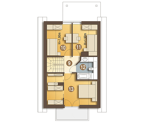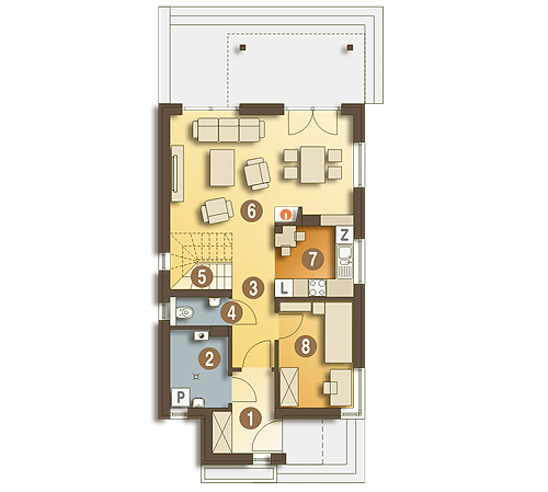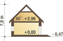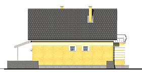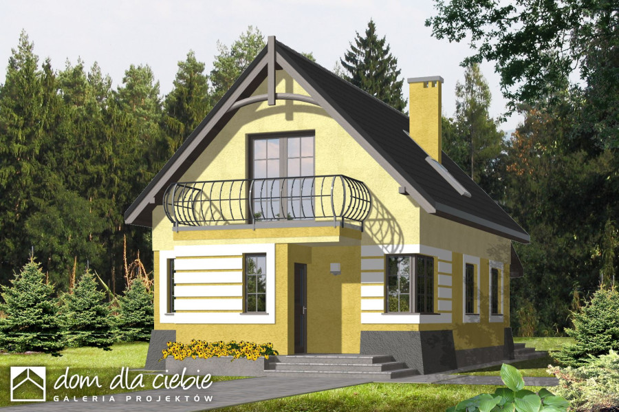 Zgrabny, niewielki dom jednorodzinny, zaprojektowany na wąską działkę, dla 4 osobowej rodziny, nadający się na dom całoroczny lub letniskowy. Drzwi wejściowe chronione są przed opadami funkcjonalnym podcieniem, natomiast jedno z wyjść tarasowych z p. dziennego przestronnym daszkiem na słupach. Z wiatrołapu dostępne jest pom. gospodarcze z piecem C.O.. Kuchnię, w zależności od upodobań inwestorów, można pozostawić otwartą lub zamknąć ściankami działowymi. Na poddaszu zaprojektowano 2 małe sypialnie, jedną większą z wewnętrzną garderobą oraz łazienkę. Wszystkie pomieszczenia, w wersji bez garażu, doświetlone są światłem dziennym.fundamenty: BETONOWE ściany zewnętrzne: POROTHERM+STYROPIAN TERMO ORGANIKA rodzaj stropu: TERIVA I elewacje: TYNK STRUKTURALNY pokrycie dachu: DACHÓWKA CEM. lub CER.