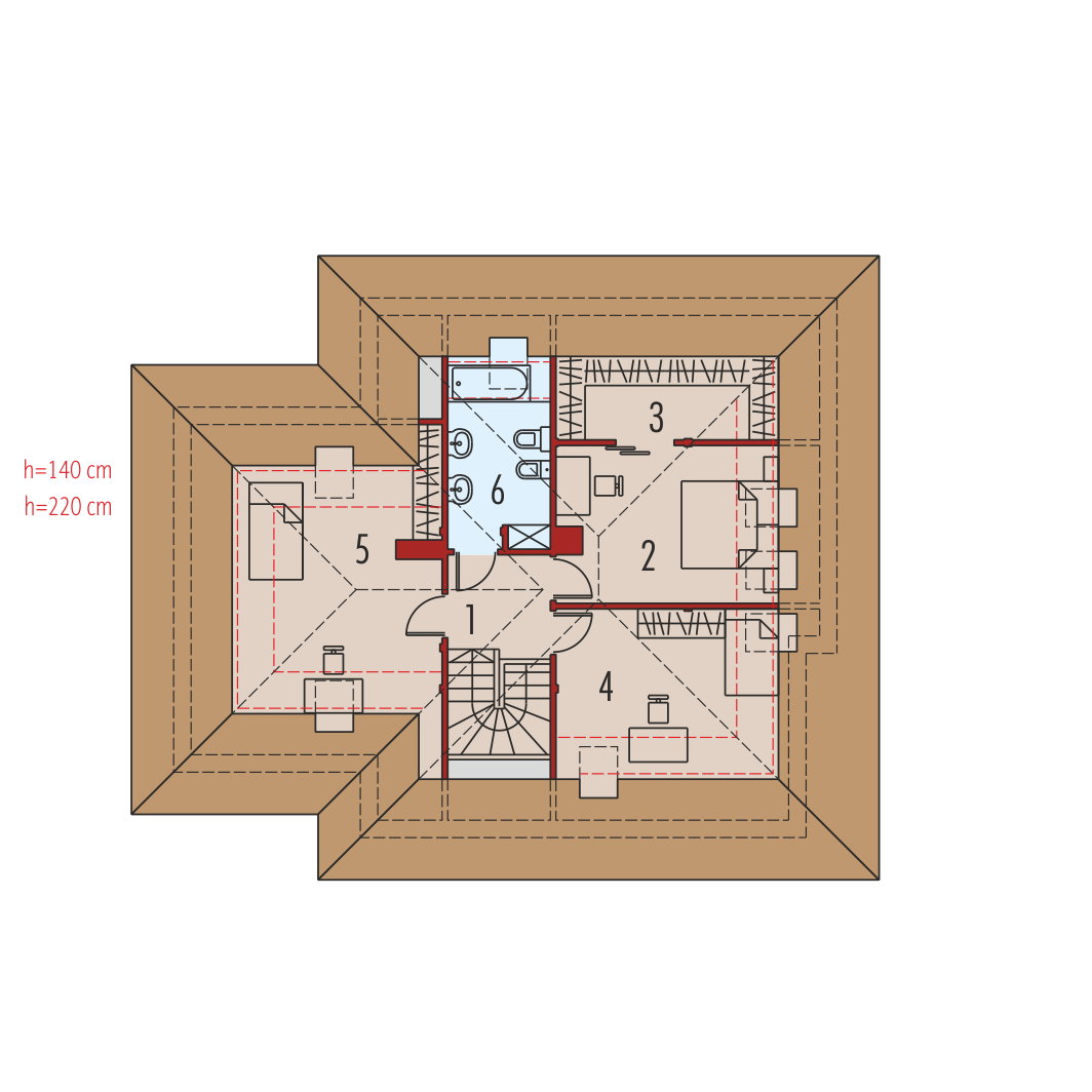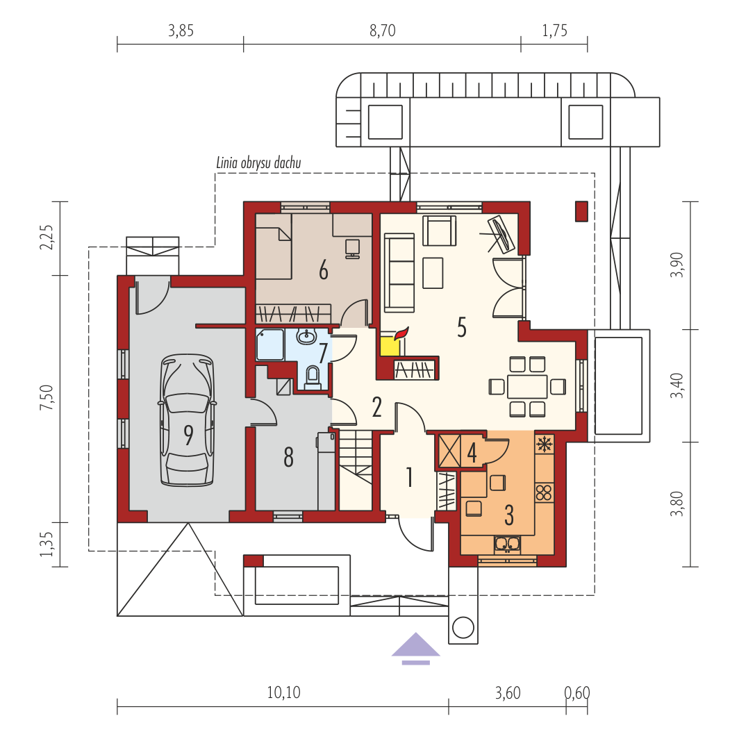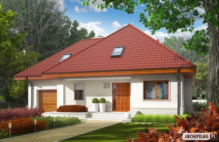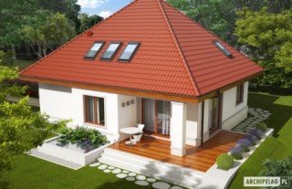 Charakterystyka: Dom parterowy z poddaszem użytkowym, niepodpiwniczony, z garażem jednostanowiskowym Przeznaczenie: Dom dla 4-5 osobowej rodzinyTechnologia i konstrukcja: Ściany zewnętrzne: murowane, Strop: gęstożebrowy Dach: konstrukcja drewniana, dachówka ceramiczna Röben Inne: schody wewnętrzne żelbetoweRozwiązania instalacyjne: Ogrzewanie: kocioł gazowy, rozprowadzenie ciepła: grzejniki Wentylacja: grawitacyjna Wykończenie: Elewacje: tynk mineralny i okładzina kamiena, cokół kamienny Stolarka: drewniana lub PCVWersje - zapytaj o dostępność: - Jarek - bez garażu - Jarek G2 - z garażem dwustanowiskowym - Jarek II – z innym wykończeniem elewacji, bez garażu - Jarek II G1 - z innym wykończeniem elewacji i garażem jednostanowiskowym - Jarek II G2 - z innym wykończeniem elewacji i garażem dwustanowiskowym - odbicia lustrzane do wszystkich wersjiIstnieje techniczna możliwość: - podpiwniczenia - zbliźniaczenia - wykonania domu dwulokalowego