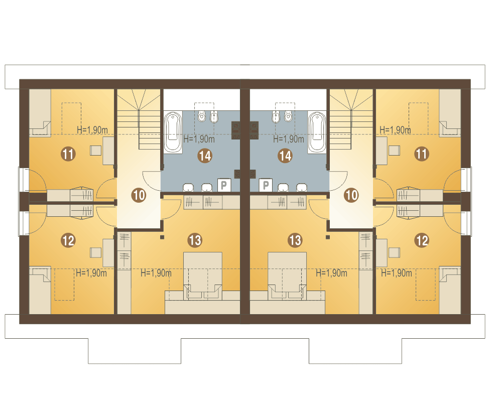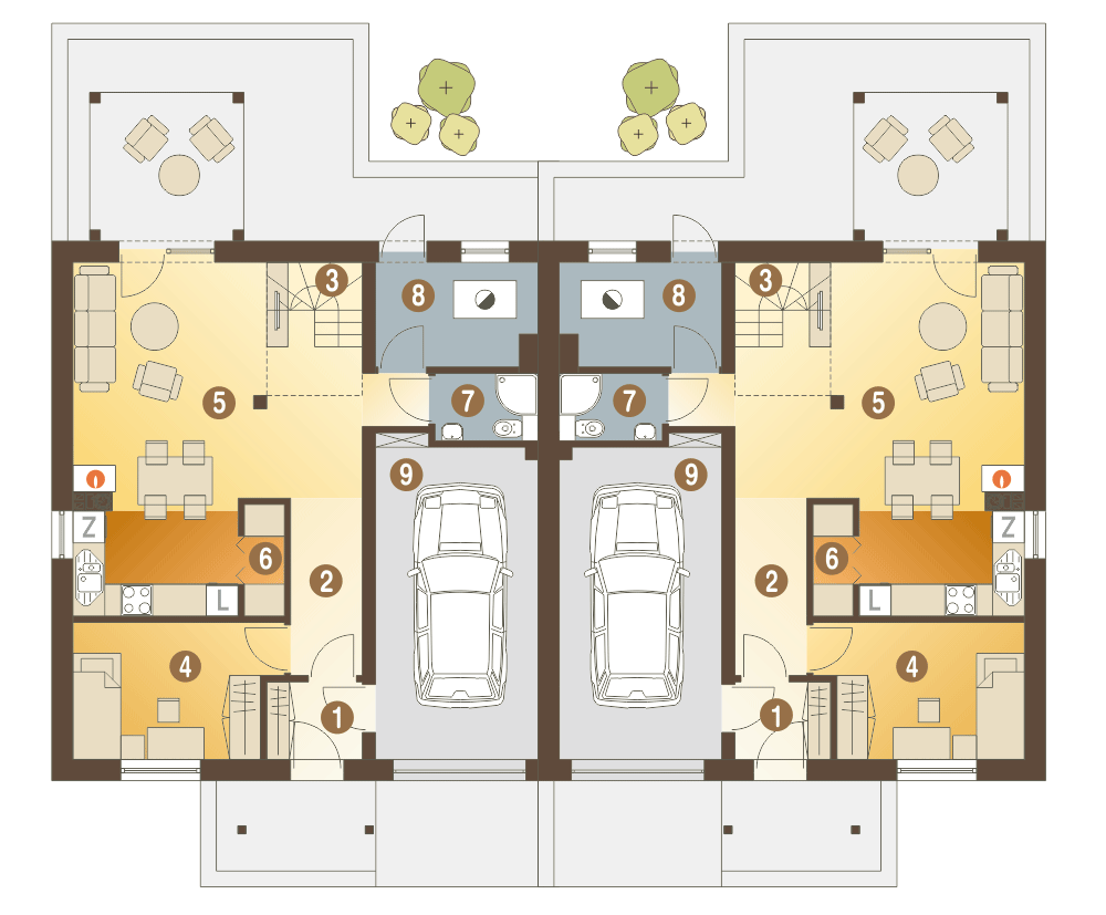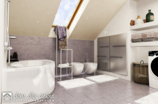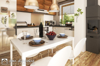 (Uwaga: projekty typu bliźniak oferujemy jako domy dwulokalowe, projekt można zamówić również w zabudowie bliźniaczej) Jarząbek II dwulokalowy A1-BL1 powstał poprzez połączenie dwóch segmentów budynku (lewy i prawy) wspólną ścianą szczytową od strony garaży. Poniższy opis dotyczy jednego segmentu. Jarząbek II to mały domek w układzie kalenicowym, zaprojektowany z myślą o ekonomicznej budowie o użytkowaniu dla 3-4 osobowej rodziny. Parter zawiera w sobie salon z kuchnią (niewielka spiżarnia przy kuchni), pokój gościnny, wiatrołap, hol, łazienkę z natryskiem oraz garaż i kotłownię na paliwo stałe. Na poddasze prowadzą wygodne schody. Poddasze mieści w sobie sporą łazienkę oraz trzy sypialnie. Architektura Jarząbka II łączy w sobie elementy tradycyjne i nowoczesne.fundamenty: BETONOWE ściany zewnętrzne: BLOCZKI SILIKATOWE+STYROPIAN TERMO ORGANIKA rodzaj stropu: MONOLITYCZNY elewacje: TYNK STRUKTURALNY pokrycie dachu: DACHÓWKA CEM. lub CER.