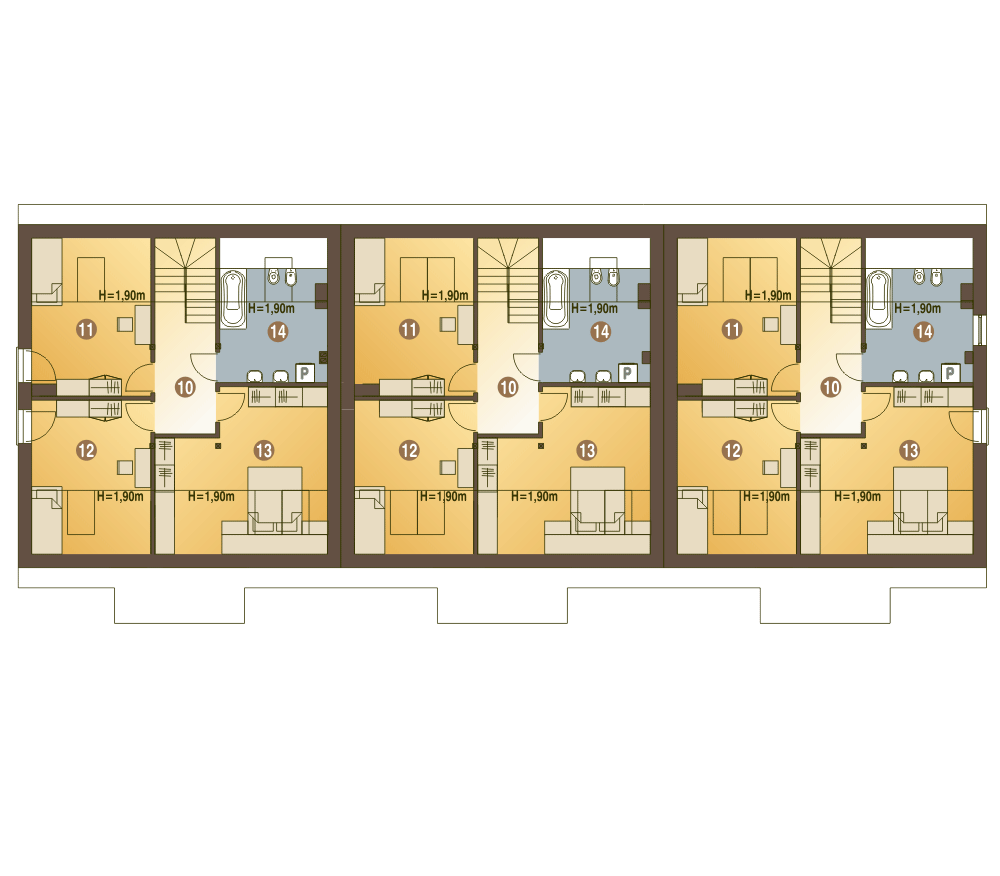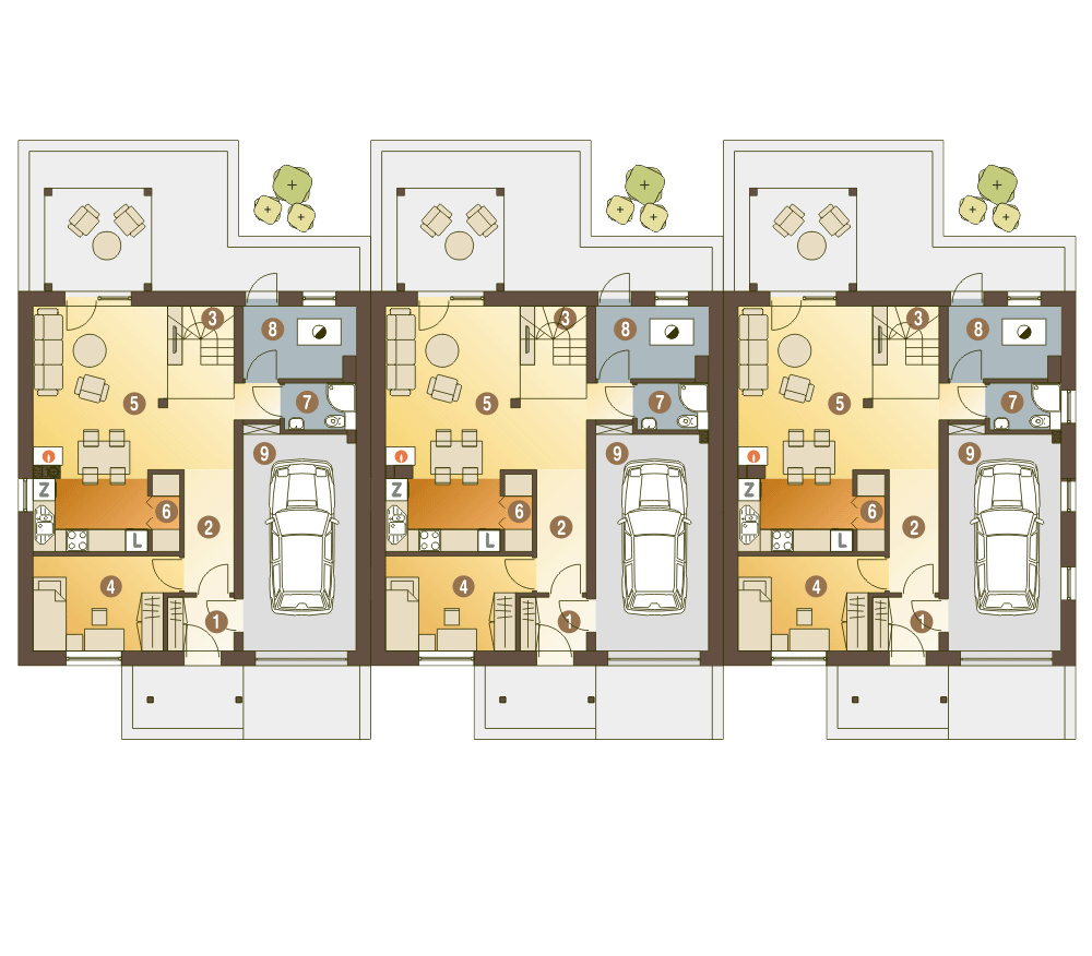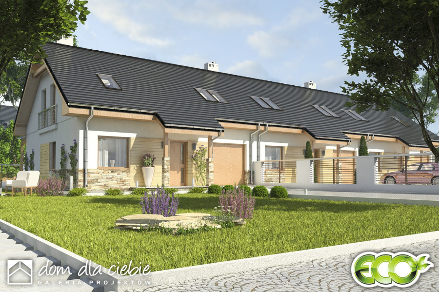 Poniższy opis dotyczy jednego segmentu. Jarząbek II to mały domek w układzie kalenicowym, zaprojektowany z myślą o ekonomicznej budowie o użytkowaniu dla 3-4 osobowej rodziny. Parter zawiera w sobie salon z kuchnią (niewielka spiżarnia przy kuchni), pokój gościnny, wiatrołap, hol, łazienkę z natryskiem oraz garaż i kotłownię na paliwo stałe. Na poddasze prowadzą wygodne schody. Poddasze mieści w sobie sporą łazienkę oraz trzy sypialnie. Architektura Jarząbka II łączy w sobie elementy tradycyjne i nowoczesne.