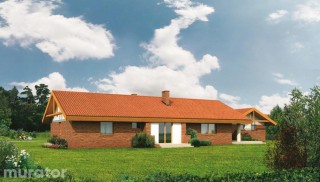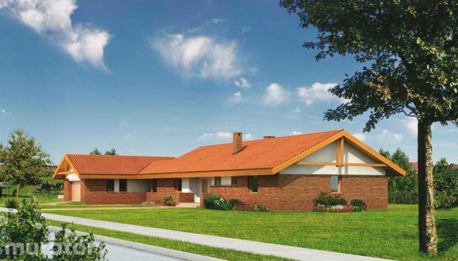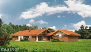 Projekt z serii <b>"Dom piękny i prosty"</b>. Dużymi atutami domu są dobrze i funkcjonalnie rozplanowane wnętrze, ciekawa i rozłożysta bryła oraz dobre proporcje. Wyglądem przypomina dużą, rodzinną posiadłość lub siedlisko. Projekt zachwyca rozmachem i oryginalnymi rozwiązaniami. <b>Pokój dzienny</b> wraz z jadalnią i fragmentem holu tworzy przestronną, wspólną część domu. Można tu przyjmować gości i odpoczywać przed kominkiem. Jego ozdobą są szerokie, czteroskrzydłowe, przeszklone drzwi prowadzące na taras. Cztery sypialnie, położone w głębi <b>domu</b>, w jego prawym skrzydle są zaciszne - nikt nie zakłóca odpoczynku przebywającym tam osobom. Ciekawym rozwiązaniem jest wygodny apartament małżeński, połączony z garderobą i łazienką, z którego