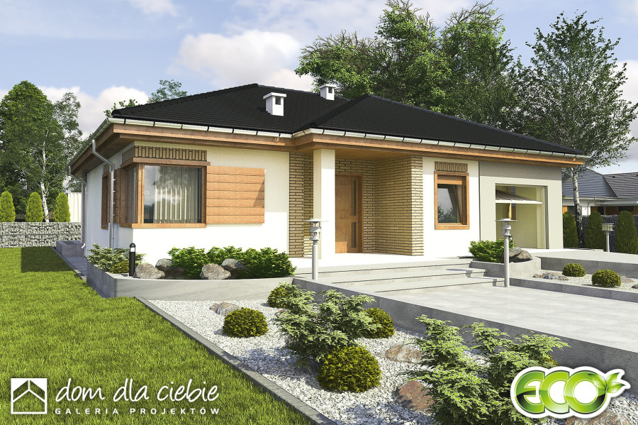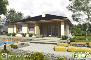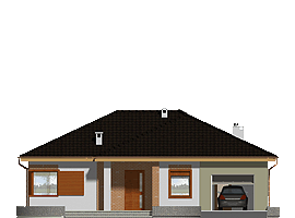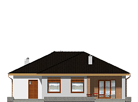 Jerzyk to nowy projekt posiada klasyczną bryłę domu parterowego przekrytą dachem wielospadowym. Program funkcjonalny budynku jest dostosowany do potrzeb 3-4 osobowej rodziny. Funkcja Jerzyka podzielona jest na strefę dzienną i nocną. W dziennej strefie zaprojektowano foremny salon z kominkiem i wyjściem na taras oraz otwartą kuchnię ze spiżarnią. Część nocną stanowią trzy zgrabne sypianie oraz duża łazienka. Do pomieszczenia technicznego można dostać się dzięki obszernemu holowi spełniającemu funkcję komunikacyjną w budynku.fundamenty: BETONOWE ściany zewnętrzne: POROTHERM+STYROPIAN TERMO ORGANIKA ściany wewnętrzne: POROTHERM/ CEGŁ.DZIURAWKA rodzaj stropu: TERIVA elewacje: TYNK STRUKTURALNY pokrycie dachu: DACHÓWKA CEM. lub CER.