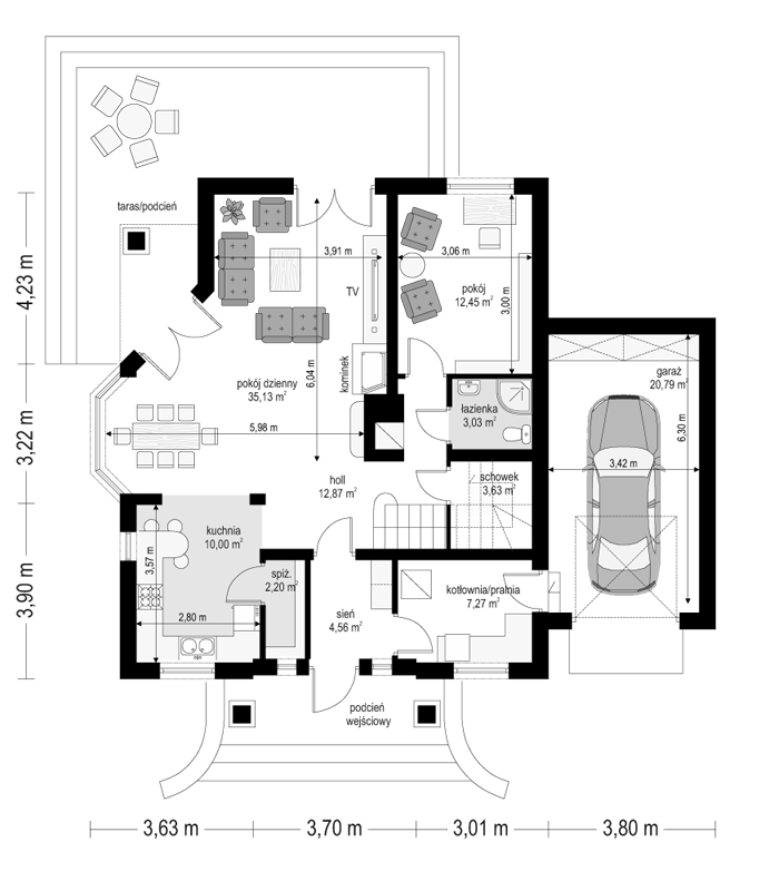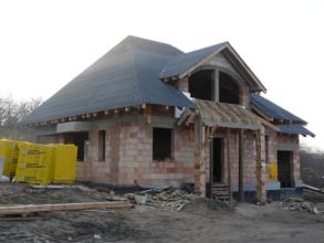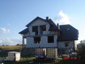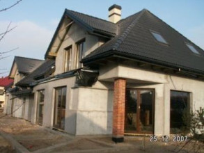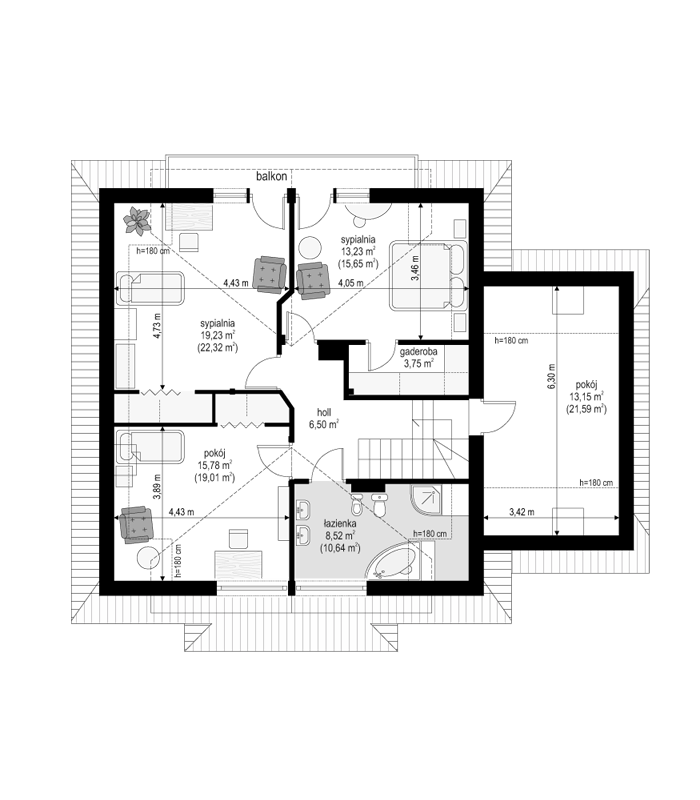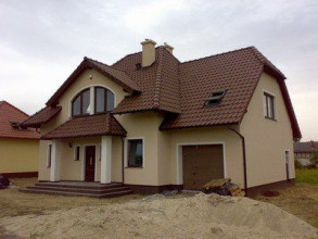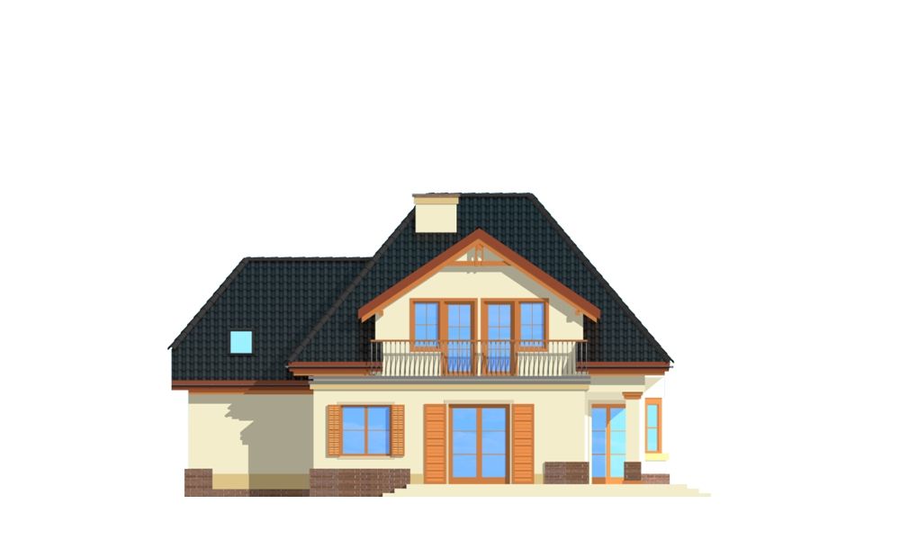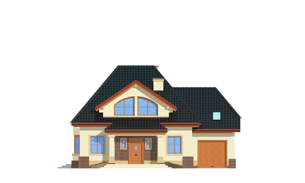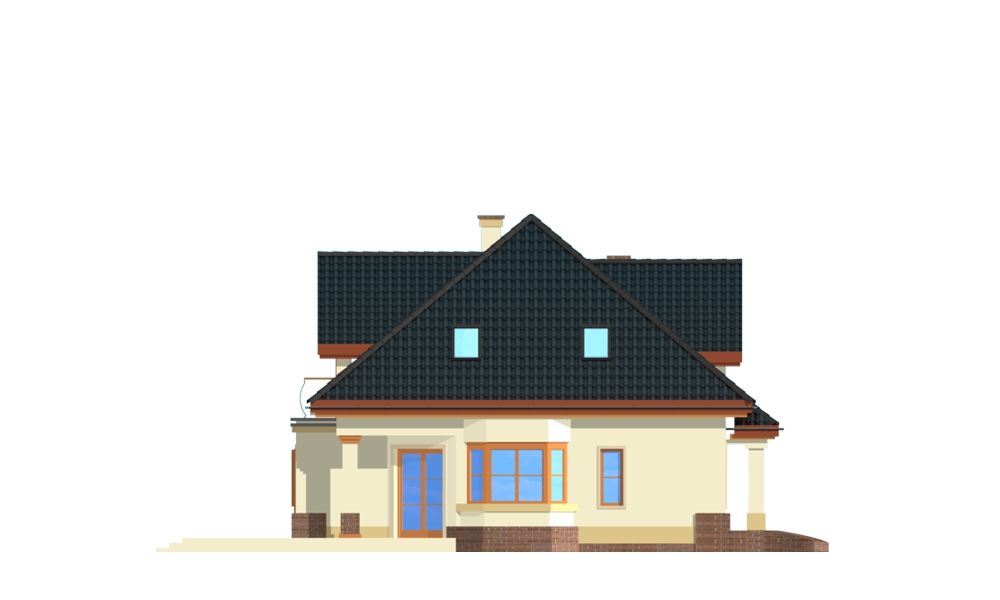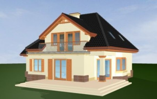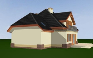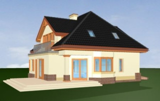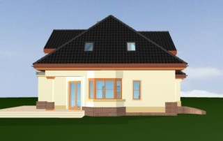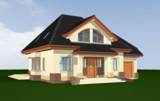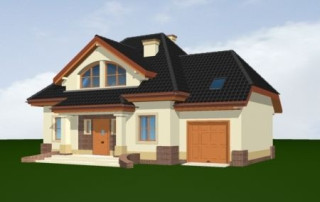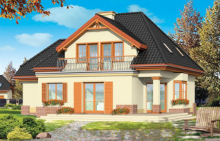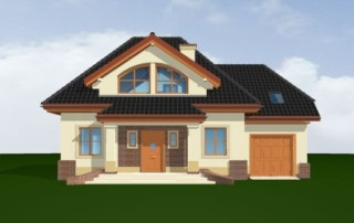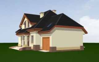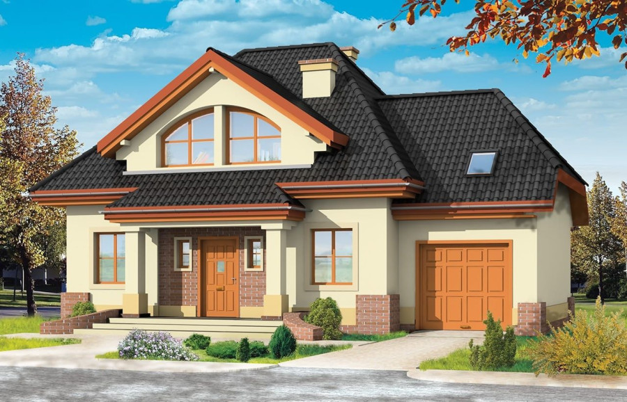 Projekt domu Dom na Medal 2 to pojedyncza wersja projektu domu Dom na Medal, z dachem nad częścią garażową zakończonym naczółkiem. Projekt doskonale nadaje się na mieszkanie dla 4- 5-osobowej rodziny. Można go posadowić nawet na dość wąskiej działce. Jednoprzestrzenne wnętrze salonu z jadalnią i holem oraz dodatkowy pokój z łazienką na parterze, oraz trzy wygodne sypialnie na poddaszu (z minimalnymi skosami), tworzą wygodne miejsce do życia. Dodatkowo we wnętrze wkomponowano kilka pomieszczeń pomocniczych - garderób i schowków. Poddasze nad garażem może pełnić rolę strychu lub pomieszczenia mieszkalnego. Pracownia posiada również projekt domu Dom na Medal 2 w odbiciu lustrzanym. Zapraszamy do zapoznania się z pełną ofertą pracowni MG Projekt: Dom na Medal - bliźniak.