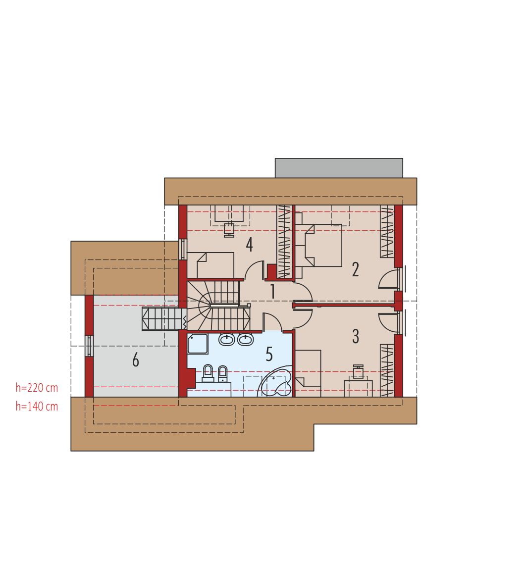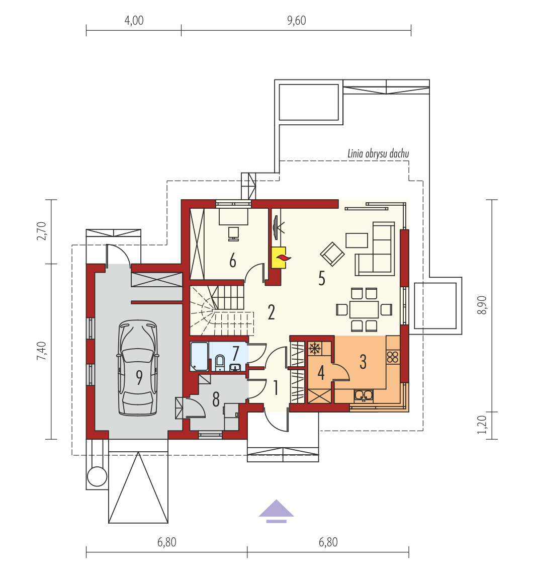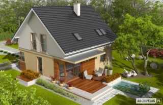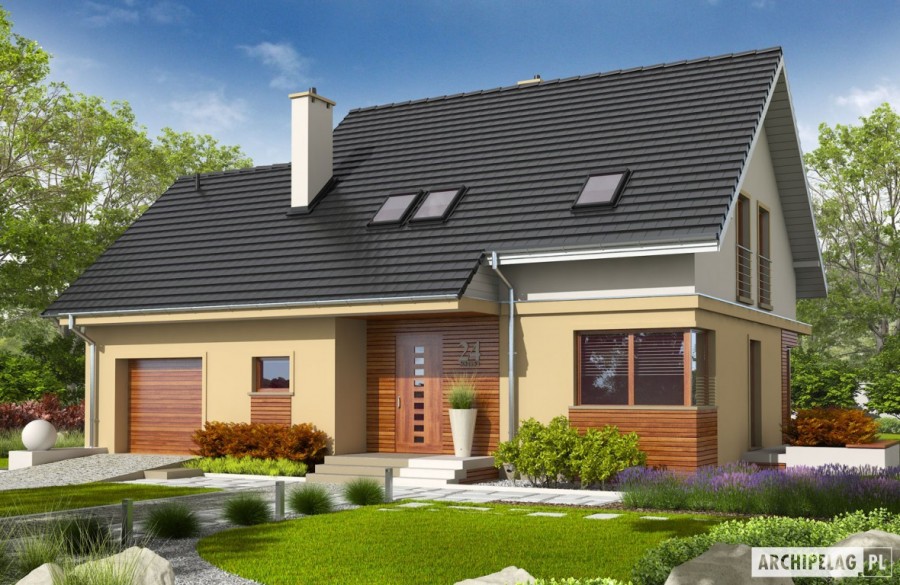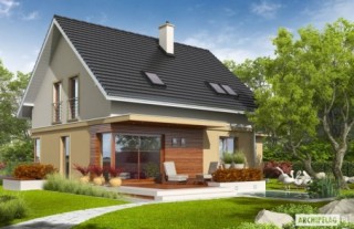 Charakterystyka: Dom parterowy z poddaszem użytkowym, niepodpiwniczony, z garażem jednostanowiskowymPrzeznaczenie: Dom dla 3-5-osobowej rodziny Technologia i konstrukcja:Ściany zewnętrzne: murowane, dwuwarstwowe, beton komórkowy 24 cm, ocieplenie wełna mineralna 12 cmŚciany wewnętrzne: nośne i działowe murowane,cegła wapienno-piaskowa 24 cm i 12 cmStrop: międzypiętrowy gęstożebrowy TerivaDach: konstrukcja drewniana, ocieplenie wełna mineralna 30 cm, dachówka ceramiczna płaska Bergamo firmy RöbenInne: schody wewnętrzne drewniane Rozwiązania instalacyjne:Ogrzewanie: kocioł gazowy kondensacyjny, rozprowadzenie ciepła: grzejnikiWentylacja: grawitacyjna Wykończenie:Elewacje: tynk cienkowarstwowy mineralny, okładzina z płyty HPL z naturalną okleiną drewnianą firmy ProdemaStolarka: drewniana, PVC lub aluminiowa, rolety zewnętrzne w systemie CleverBox firmy BeCleverOkna połaciowe: rozwiązania technologiczne i wyłaz dachowy firmy FAKROOtoczenie: kostka betonowa firmy Libet w kolorze jasno szarym, system tarasowy ProDeck - deska kompozytowa Terra w kolorze orzech Wersje - zapytaj o dostępność:- Jurek II – bez garażu lub z garażem dwustanowiskowym - Jurek G1 Leca® DOM – taki sam układ funkcjonalny, dom w technologii Leca® KERAMZYTU, z garażem jednostanowiskowym - Jurek – taki sam układ funkcjonalny, technologia murowana, bez garażu lub z garażem dwustanowiskowym - Jurek III – taki sam układ funkcjonalny, ściany trójwarstwowe w technologii firmy Röben, inne wykończenie elewacji, różne wersje garaży- każda wersja z inną propozycją wykończenia elewacji- odbicie lustrzane do każdej wersji Istnieje techniczna możliwość:- podpiwniczenia budynku- zbliźniaczenia- wykonania budynku w technologii szkieletowej