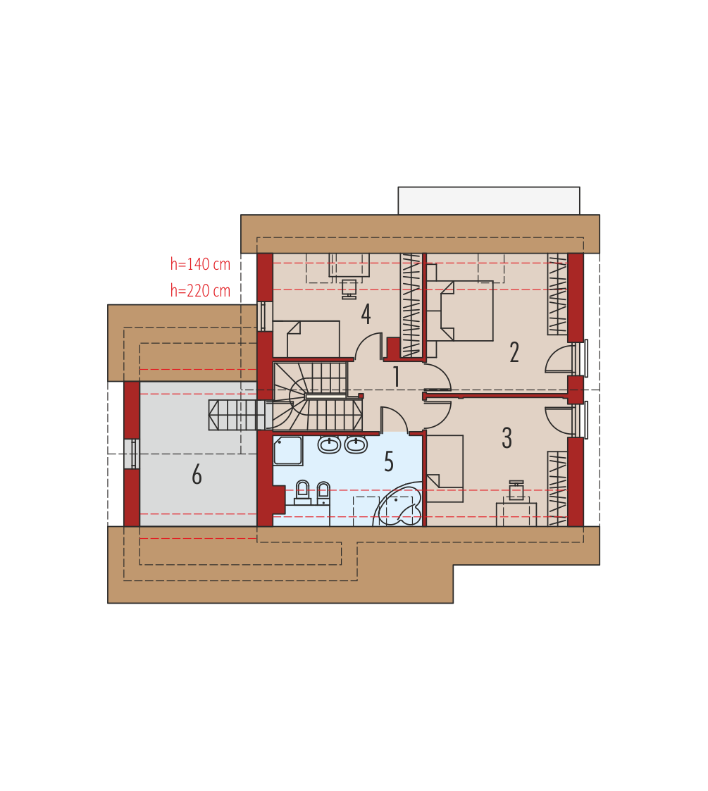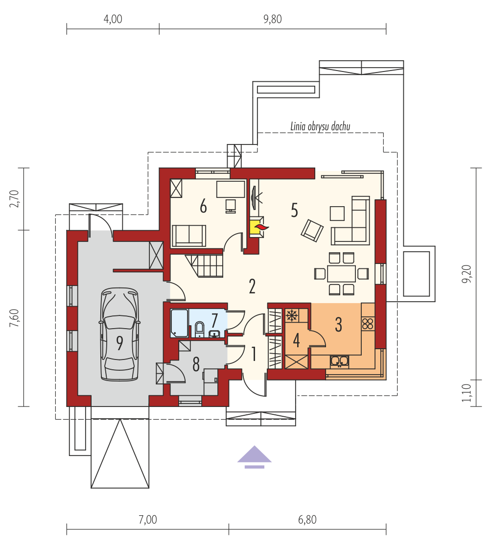 Ściany zewnętrzne trójwarstwowe wykonano z energooszczędnych pustaków ceramicznych. Charakterystyka: dom parterowy z poddaszem użytkowym, niepodpiwniczony, z garażem jednostanowiskowymPrzeznaczenie: dom dla 3-5-osobowej rodzinyTechnologia i konstrukcja:Fundamenty: ławy trójwarstwowe, bloczki betonowe 24 cm, ocieplenie styropian 10 cm, bloczki betonowe 12 cmŚciany zewnętrzne: murowane, trójwarstwowe, pustaki ceramiczne 24 cm, ocieplenie 10 cm, pustka wentylacyjna, warstwa licowa z cegły klinkierowej 11,5 cm firmy RöbenŚciany wewnętrzne: murowane, pustaki ceramiczne 24 cm, ścianki działowe pustaki ceramiczne 11,5 cmPodłoga na gruncie: płyta betonowa, ocieplenie styropian 15 cmStrop: strop międzypiętrowy gęstożebrowy TerivaDach: konstrukcja drewniana, ocieplenie wełna mineralna 30 cm, dachówka ceramiczna Piemont Jesienny Liść firmy RöbenRozwiązania instalacyjne: Ogrzewanie: kocioł gazowy, rozprowadzenie ciepła: grzejniki Wentylacja: grawitacyjna Wykończenie:Elewacja: cegły licowe klinkierowe firmy Röben 11,5 cm, typ Ravello baryt biała, elementy nadprożowe i parapety ceglane firmy RöbenStolarka: drewniana, PCV lub aluminiowaOkna połaciowe: rozwiązania technologiczne firmy FakroWersje - zapytaj o dostępność:- Jurek III – bez garażu lub z garażem dwustanowiskowym- Jurek G1 Leca® DOM – taki sam układ funkcjonalny, dom w technologii Leca® KERAMZYTU, tradycyjne wykończenie elewacji, z garażem jednostanowiskowym- Jurek - taki sam układ funkcjonalny, technologia murowana, bez garażu lub z garażem dwustanowiskowym- Jurek II – taki sam układ funkcjonalny, nowoczesne wykończenie elewacji, różne wersje garaży- Odbicie lustrzane do każdej wersji Istnieje techniczna możliwość:- podpiwniczenia budynku- zbliźniaczeniaAtuty projektu okiem architekta:- Doskonałe parametry cieplne dzięki zastosowaniu ścian trójwarstwowych w energooszczędnej technologii- Zwarta bryła budynku sprzyjająca energooszczędności- Funkcjonalne i ergonomiczne wnętrze z podziałem na strefę dzienną na parterze i nocną na poddaszu- Kuchnia z praktyczną spiżarnią- Wygodne zadaszenie nad wejściem do budynku jako osłona przed wiatrem i śniegiem- Atrakcyjne narożne przeszklenie salonu z wyjściem na elegancki częściowo zadaszony taras- Duże sypialnie na poddaszu- Dodatkowa przestrzeń gospodarcza na półpiętrze- Garaż oddzielony termicznie od ogrzewanej części budynku