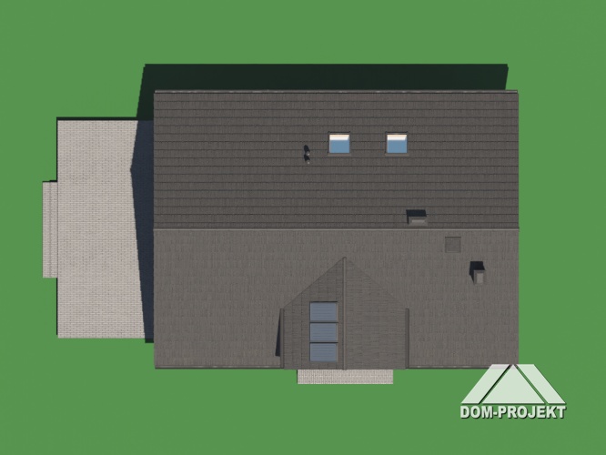 Funkcjonalny dom o ciekawej architekturze. Podstawowym pomieszczeniem parteru jest przestronny salon połączony z aneksem kuchennym. Ponadto na parterze znajdują się pomieszczenia: pokój-biblioteka, pralnia, kotłownia i spiżarka. Kominek w salonie. Na poddaszu cztery wygodne sypialnie i łazienka.