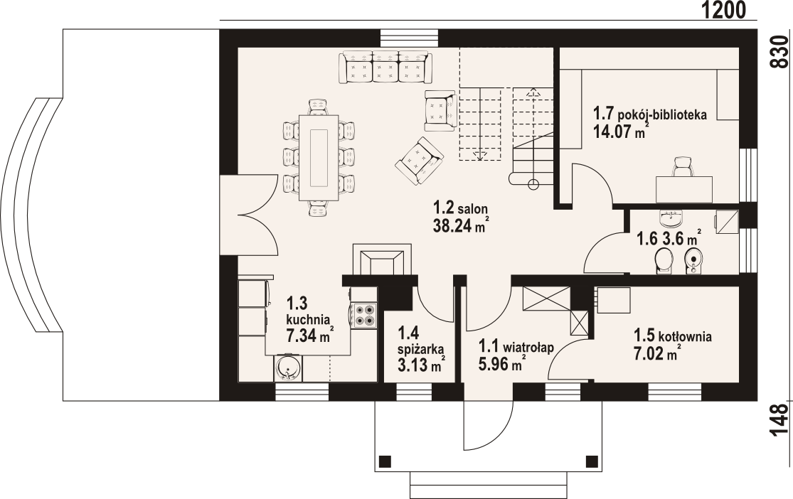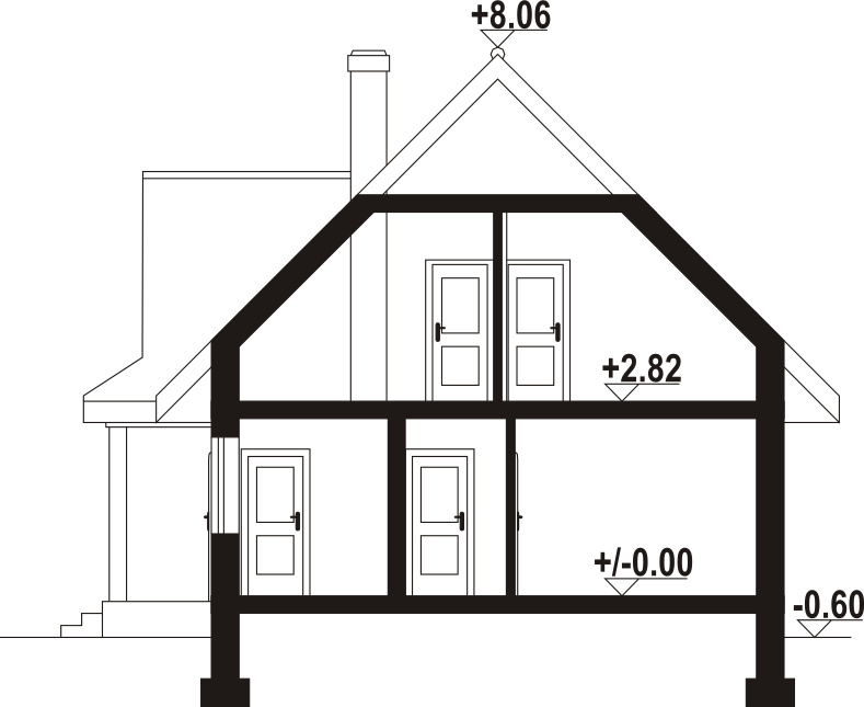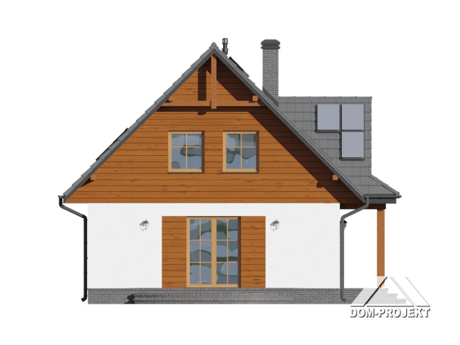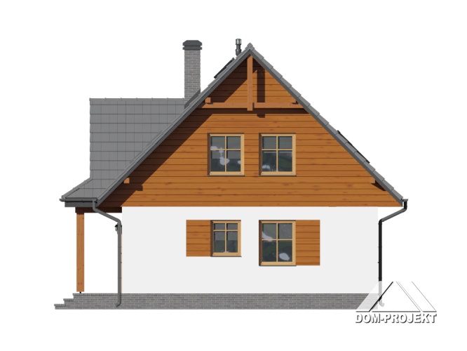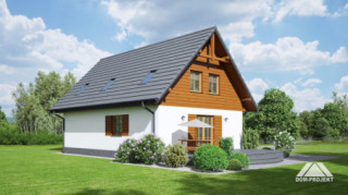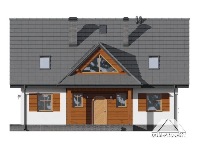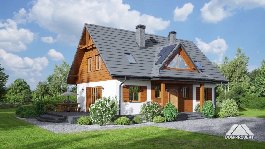 Piękny, zaprojektowany z dbałością o proporcje i estetykę dom przeznaczony dla 4-5 osobowej rodziny. Na parterze obszerna strefa dzienna składająca się z otwartej kuchni oraz salonu. W salonie kominek oraz schody prowadzące na poddasze. Dodatkowo na parterze zaprojektowano pokój-bibliotekę. Na poddaszu znajdują się cztery sypialnie oraz wygodna łazienka.