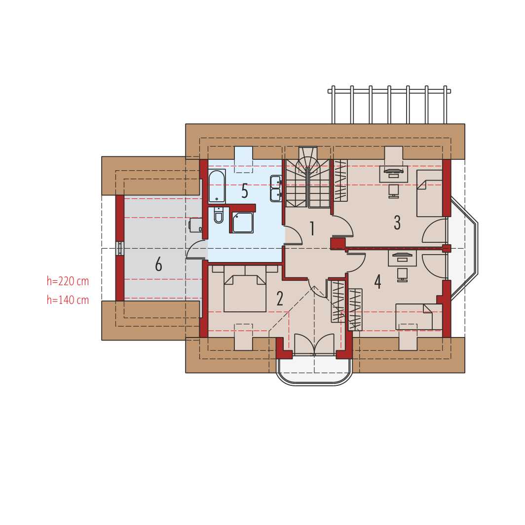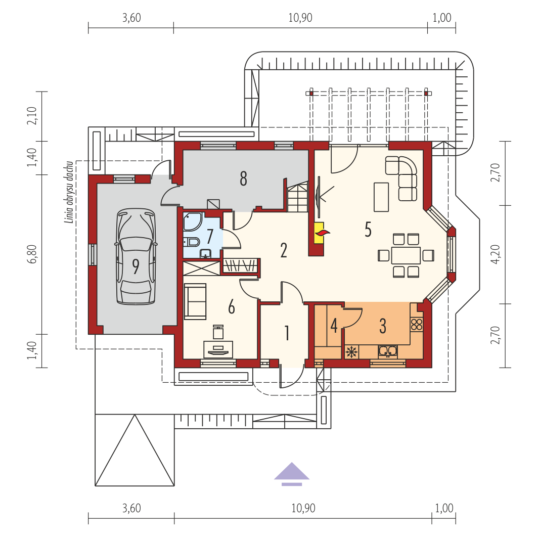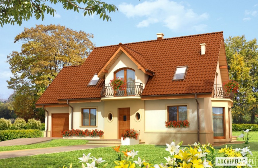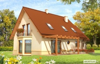 Dom w technologii Leca® KERAMZYT Charakterystyka: Dom parterowy z poddaszem użytkowym, niepodpiwniczony, z garażem dwustanowiskowymPrzeznaczenie: Dom dla 3-5-osobowej rodziny Technologia i konstrukcja:Fundamenty: ławy, bloczki keramzytobetonowe bloczki Leca® BLOK fundamentowy 24 cm, ocieplenie Leca® KERAMZYT izolacyjny LŚciany zewnętrzne: murowane, dwuwarstwowe, keramzytobetonowe Pustaki Leca® BLOK 24, ocieplenie wełna mineralna 20 cmŚciany wewnętrzne: murowane, keramzytobetonowe Pustaki Leca® BLOK 24, ścianki działowe keramzytobetonowe Pustaki Leca® BLOK 12 cmPodłoga na gruncie: płyta betonowa, na podłożu z Leca® KERAMZYTU impregnowanegoStrop: strop międzypiętrowy gęstożebrowy TerivaDach: konstrukcja drewniana, ocieplenie wełna mineralna 30 cm, dachówka ceramiczna lub cementowaIzolacje termiczne i akustyczne: wełna mineralna, Leca® KERAMZYTHydroizolacje: technologia Weber DeitermannZaprawy, tynki, wylewki: gotowe zaprawy budowlane WeberInne: schody wewnętrzne drewniane Rozwiązania instalacyjne:Ogrzewanie: kocioł gazowy, rozprowadzenie ciepła: grzejnikiWentylacja: grawitacyjna Wykończenie:Elewacje: tynk cienkowarstwowy silikatowo-silikonowyStolarka: drewniana, PVC lub aluminiowa, rolety zewnętrzne np. w systemie CleverBox firmy BeCleverOkna połaciowe: rozwiązania technologiczne np. firmy VELUXInne: ażurowa pergola drewniana Wersje - zapytaj o dostępność:- Kajka – taki sam układ funkcjonalny, bez garażu i z garażem dwustanowiskowym- Kajka Mocca – taki sam układ funkcjonalny, inne wykończenie elewacji, różne wersje garaży- Kajka G2 (bliźniak) - w zabudowie bliźniaczej, podobny układ funkcjonalny, garaż dwustanowiskowy- Odbicie lustrzane do każdej wersji Istnieje techniczna możliwość:- podpiwniczenia budynku Atuty projektu okiem architekta:- Funkcjonalne i ergonomiczne wnętrze z podziałem na strefę dzienną na parterze i nocną na poddaszu- Kuchnia z praktyczną spiżarnią- Reprezentacyjny salon z kominkiem oferujący wiele możliwości aranżacji- Duże pomieszczenie kotłowni pozwala na zastosowanie dowolnego źródła ogrzewania- Wygodna strefa nocna zaplanowana na poddaszu- Trzy sypialnie z wyjściem na balkon- Dodatkowe pomieszczenie gospodarcze na poddaszu mogące służyć np. za pralnię- Atrakcyjna pergola zacieniająca taras- Wykusz z balkonem