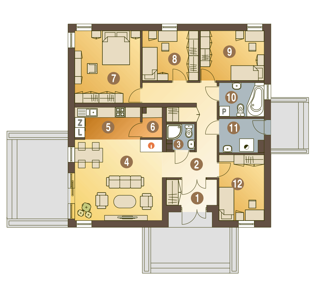 Projekt Kalandra II przeznaczony jest dla 4-5 osobowej rodziny. Jest to dom parterowy aż z pięcioma pokojami (wliczając salon). Projekt zawiera: wiatrołap, kotłownię na paliwo stałe, hol, 4 sypialnie salon z kuchnią i spiżarnią oraz dwie łazienki. Elewacje zewnętrzne Kalandry II są nowoczesne i eleganckie