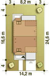 Wejście do budynku z podcienia wejściowego przez sień do hlolu. Na wprost znajduje się wejście do pokoju dziennego, a dalej przejście na zadaszony taras. Z holu ponadto dostępne są: kuchnia z jadalnią, łazienka, pomieszczenie gospodarcze oraz druga część budynku. Zlokalizowano tam: 3 pokoje sypialne, łazienkę i pomieszczenie gospodarcze. Inwestor, którego interesuje dom parterowy z nieużytkowym poddaszem, o powierzchni ok.120m2, bez garażu, znajdzie w naszej ofercie, różnorodne propozycje (np. Aleksandria, Mela). Jeśli warunki zabudowy zalecają przy tym rozwiązanie z dachem czterospadowym lub wielospadowym, to idealny będzie projekt domu Kalina. Przeznaczony dla 4 osób, na planie w kształcie litery T zamyka w jednym skrzydle część dzienną, a w drugim strefę prywatną z trzema pokojami i z dwoma łazienkami. Układ ten buduje podcienia: wejściowy i ogrodowy nad atrialnym tarasem. Pokój dzienny z kominkiem to aż 35m2 i jasna przestrzeń zwrócona dużymi przeszkleniami na ogród. Połączona z nim otwarta kuchnia tworzy ze spiżarnią i kotłownią gospodarczy zespół przy wejściu. Sypialnie są przestronne, zwłaszcza główna - z własną łazienką i z garderobą. Projekt domu Kalina wyróżnia stosunkowo stromy dach (umożliwia to adaptację do celów użytkowych). W elewacjach zaproponowano duże okna bez podziałów, w salonie i w kuchni szczególnie efektowne – narożne. Tę nowoczesną stylizację uzupełnia innowacyjne połączenie klasycznego boniowania i płaszczyzn z okładziny kamiennej.