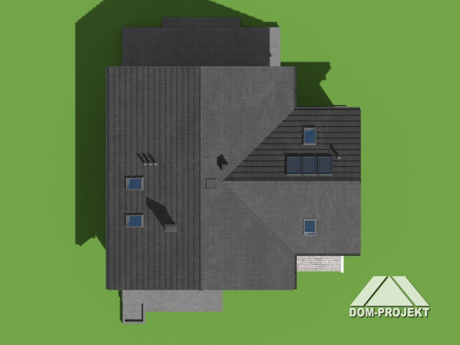 Wejście z podcienia przez sień do przestronnego holu. Pomieszczenia parteru dostępne z holu to: pokój dzienny, kuchnia, pokój, łazienka i pomieszczenie gospodarcze. Na poddaszu znajdują się 3 sypialnie i łazienka, które otwierają się na przedpokój z widokiem na hol wejściowy. Prosty, przytulny dom na rzucie prostokąta z dostawionym podcieniem wejścia i sieni oraz "wykuszem" od strony ogrodu. Bryłę budynku przykrywa dach dwuspadowy o kącie nachylenia połaci 40°.