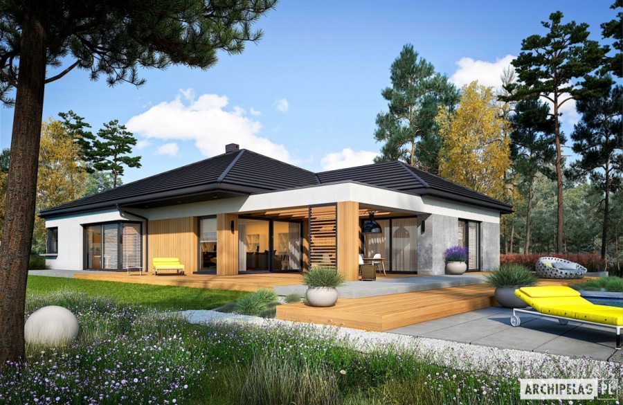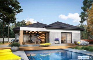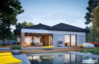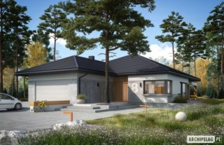 Charakterystyka: Dom parterowy, niepodpiwniczony, z garażem dwustanowiskowymPrzeznaczenie: Dom dla 3-5-osobowej rodziny Technologia i konstrukcja:Ściany zewnętrzne: murowane, dwuwarstwowe, beton komórkowy firmy Solbet 24 cm, ocieplenie wełna mineralna Isover 20 cmŚciany wewnętrzne: nośne i działowe murowane, beton komórkowy firmy Solbet 24 cm i 12 cmStrop: gęstożebrowy Teriva, ocieplenie wełna mineralna Isover 30 cmDach: konstrukcja drewniana, dachówka ceramiczna płaska Bergamo firmy Röben, więźba dachowa dostępna również w systemie prefabrykacji drewnianej Rozwiązania instalacyjne:Ogrzewanie: kocioł gazowy kondensacyjny firmy Viessmann, rozprowadzenie ciepła: grzejniki firmy PurmoWentylacja: grawitacyjna OZE: kolektory słoneczneWykończenie:Elewacje: tynk cienkowarstwowy mineralny w kolorze białym TO-PA001 z palety firmy Termo Organika, okładzina drewniana, panele ROCKPANEL STONES w kolorze szarymStolarka: aluminiowo-drewniana, świetliki tunelowe Velux Pobierz ekspercki poradnik VELUX i dowiedz się jak wybrać okna dachowe, drzwi wejściowe i brama garażowa firmy HörmannOtoczenie: kostka betonowa i płyty tarasowe firmy Libet, system tarasowy ProDeck - deska kompozytowa Terra w kolorze orzech Wersje - zapytaj o dostępność:- Karen - bez garażu lub z garażem jednostanowiskowym- Karen ENERGO PLUS - wersja z instalacjami energooszczędnymi: pompa ciepła, ogrzewanie podłogowe, wentylacja mechaniczna, panele fotowoltaiczne, różne wersje garaży- odbicie lustrzane do każdej wersjiIstnieje techniczna możliwość:- podpiwniczenia budynku- wykonania budynku w technologii szkieletowejWarianty działek dla wersji domu z garażem jednostanowiskowym i bez garażu:
