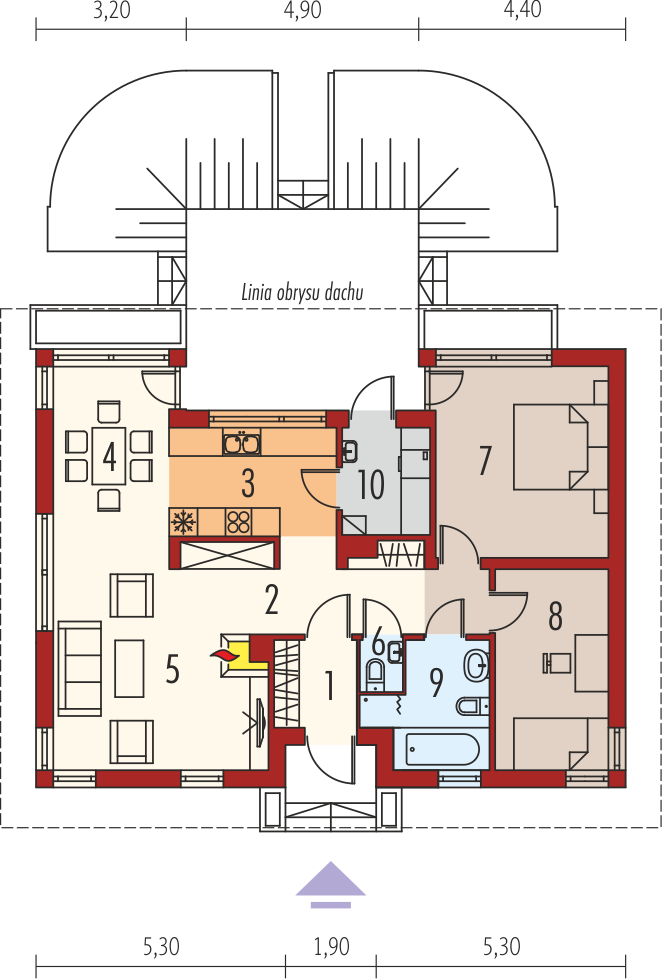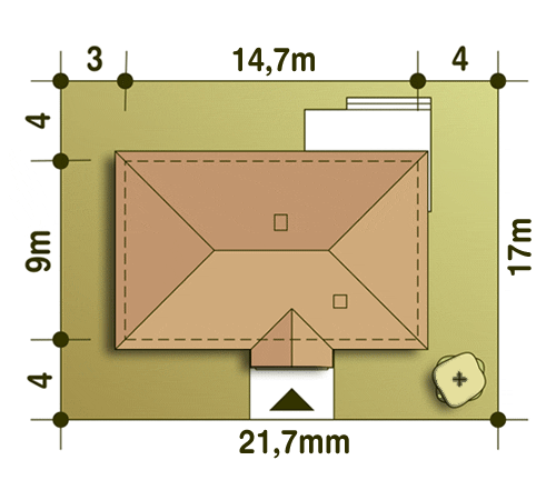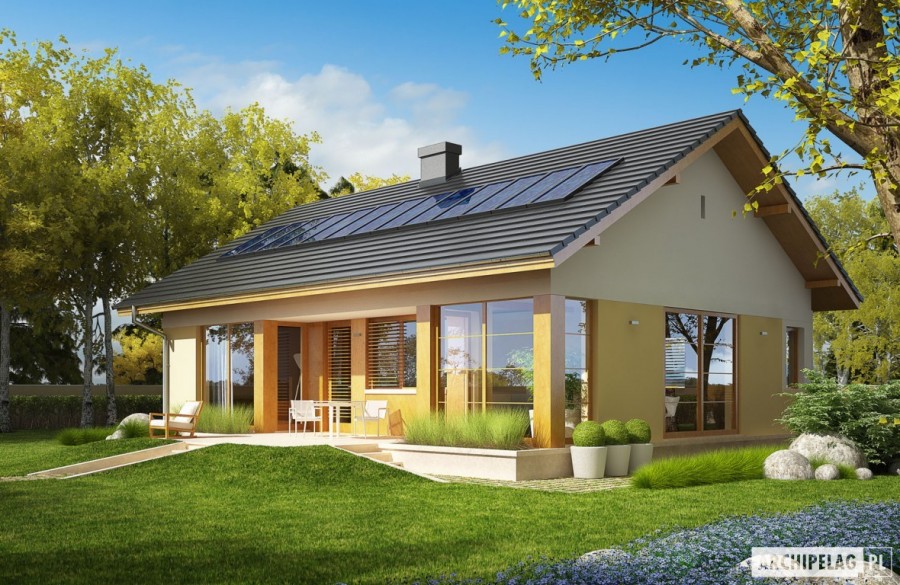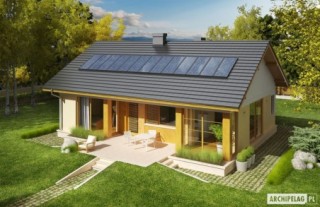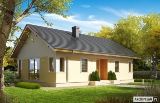 Charakterystyka: Dom parterowy, niepodpiwniczonyPrzeznaczenie: Dom dla 2-3-osobowej rodziny Technologia i konstrukcja:Ściany zewnętrzne: murowane, dwuwarstwowe, beton komórkowy 24 cm, ocieplenie wełna mineralna 12 cmŚciany wewnętrzne: nośne i działowe murowane,cegła wapienno-piaskowa 24 cm i 12 cmStrop: gęstożebrowy Teriva, ocieplenie wełna mineralna 25 cmDach: konstrukcja drewniana, dachówka ceramiczna płaska lub inna o podobnych parametrach, więźba dachowa dostępna również w systemie prefabrykacji drewnianej Rozwiązania instalacyjne:Ogrzewanie: kocioł gazowy kondensacyjny, rozprowadzenie ciepła: grzejnikiWentylacja: grawitacyjna Wykończenie:Elewacje: tynk cienkowarstwowy mineralny, okładzina drewnianaStolarka: drewniana, PVC lub aluminiowa, drzwi wejściowe firmy HörmannOtoczenie: płyty tarasowe firmy Libet Wersje - zapytaj o dostępność:- Karmela – podobny układ funkcji, z wykuszem w strefie dziennej, bez wydzielonej toalety- Karmela III ECONOMIC – podobny układ funkcji, bez wykusza i wydzielonej toalety, ekonomiczne wykończenie elewacji- odbicie lustrzane do każdej wersji Istnieje techniczna możliwość:- podpiwniczenia budynku- wykonania budynku w technologii szkieletowej