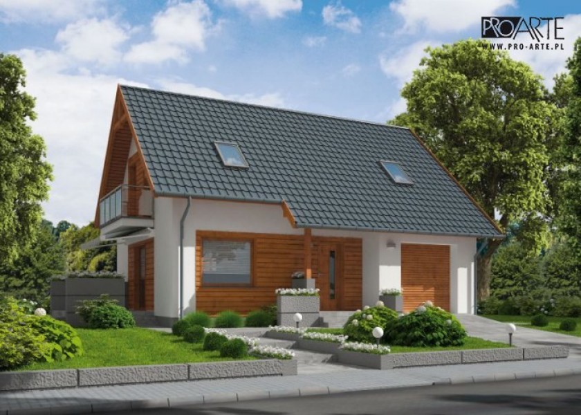 KATANIA 2 - dom jednorodzinny z poddaszem użytkowym i garażem jednostanowiskowym.Budynek o zwartej bryle, parterowy z poddaszem użytkowym. Budynek przykryty jest dachem dwuspadowym. Maksymalna wysokość budynku wynosi 8,02m. Nowoprojektowany budynek swoją formą nawiązuje do zabudowy występującej w dąsiedztwie planowanej inwestycji. Katania 2 przywodzi na myśl poczucie ciepła i bezpieczeństwa, tak ważne dla kochającej się rodziny. Na parterze znajdują się kuchnia, przestronny salon, łazienka, kotłownia, taras oraz garaż jednostanowiskowy. Na piętrze ulokowane zostały trzy wygodne sypialnie oraz przynosząca pełnię komfortu łazienka. Warunki jakie zapewnia jego wnętrze zapierają dech w piersiach! Projekt składa się z części architektonicznej, konstrukcyjnej, wewnętrznych instalacji sanitarnych i instalacji elektrycznej. W projekcie załączone są podstawowe zestawienie stali, drewna i stolarki okienno-drzwiowej. Do projektu dołączamy bezpłatną zgodę na wprowadzenie zmian, oświadczenie projektantów o wykonaniu projektu zgodnie z obowiązującymi normami i przepisami oraz kserokopie uprawnień projektantów wraz z aktualnym wpisem do izby. W przypadku zamówienia projektu w technologii lekkiej, drewnianej konstrukcji szkieletowej, powierzchnia użytkowa budynku jest o około 7% większa. Wysokość ściany kolankowej 0.81m