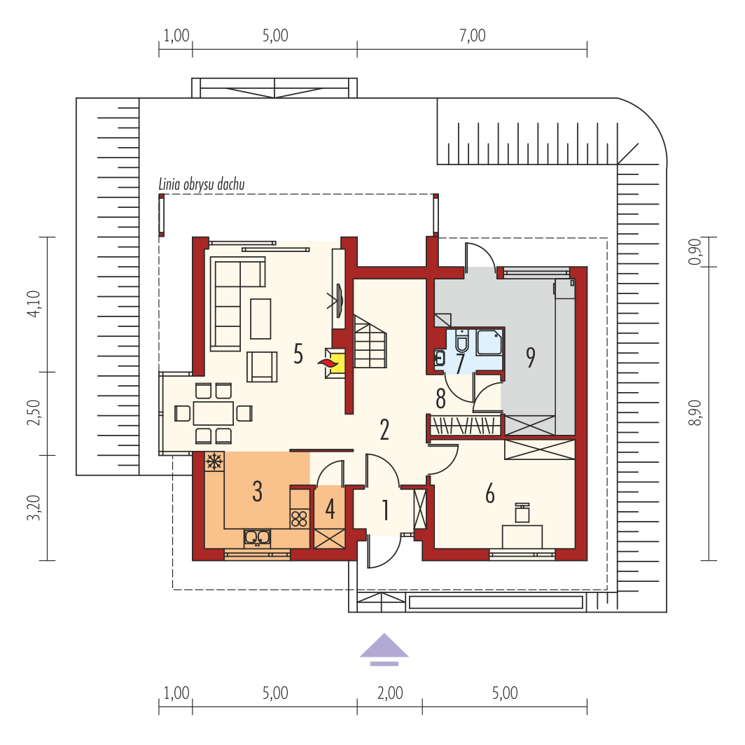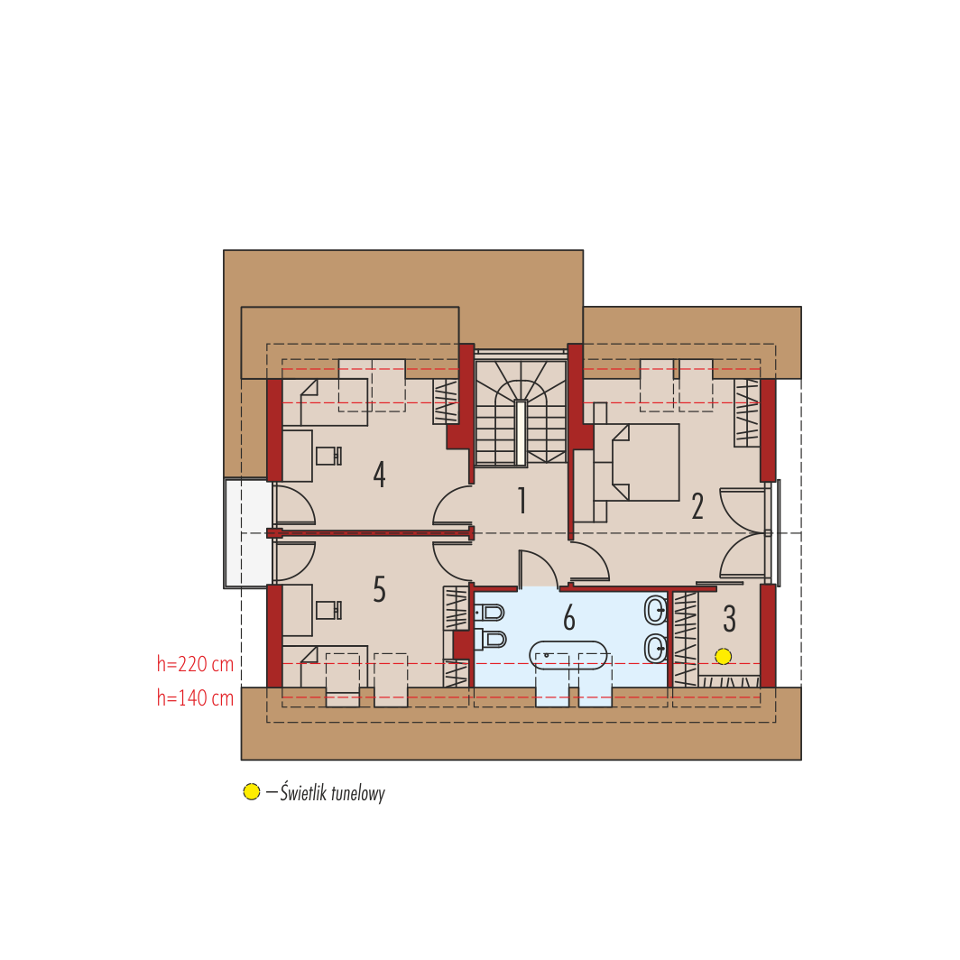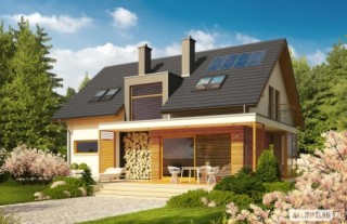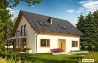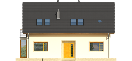 Charakterystyka: Dom parterowy z poddaszem użytkowym, niepodpiwniczony Przeznaczenie: Dom dla 4-5 osobowej rodzinyTechnologia i konstrukcja: Ściany zewnętrzne: murowane, Strop: gęstożebrowy Dach: konstrukcja drewniana, dachówka płaska lub inna o podobnych parametrach Inne: schody wewnętrzne drewnianeRozwiązania instalacyjne: Ogrzewanie: kocioł gazowy, rozprowadzenie ciepła: grzejniki Wentylacja: grawitacyjna Wykończenie: Elewacje: tynk mineralny i okładzina drewniana, cokół kamienny Stolarka: drewniana lub PCV. Dostępne wersje: - Odbicie lustrzane Istnieje możliwość: - podpiwniczenia budynku - zbliźniaczenia - wykonania domu dwulokalowego