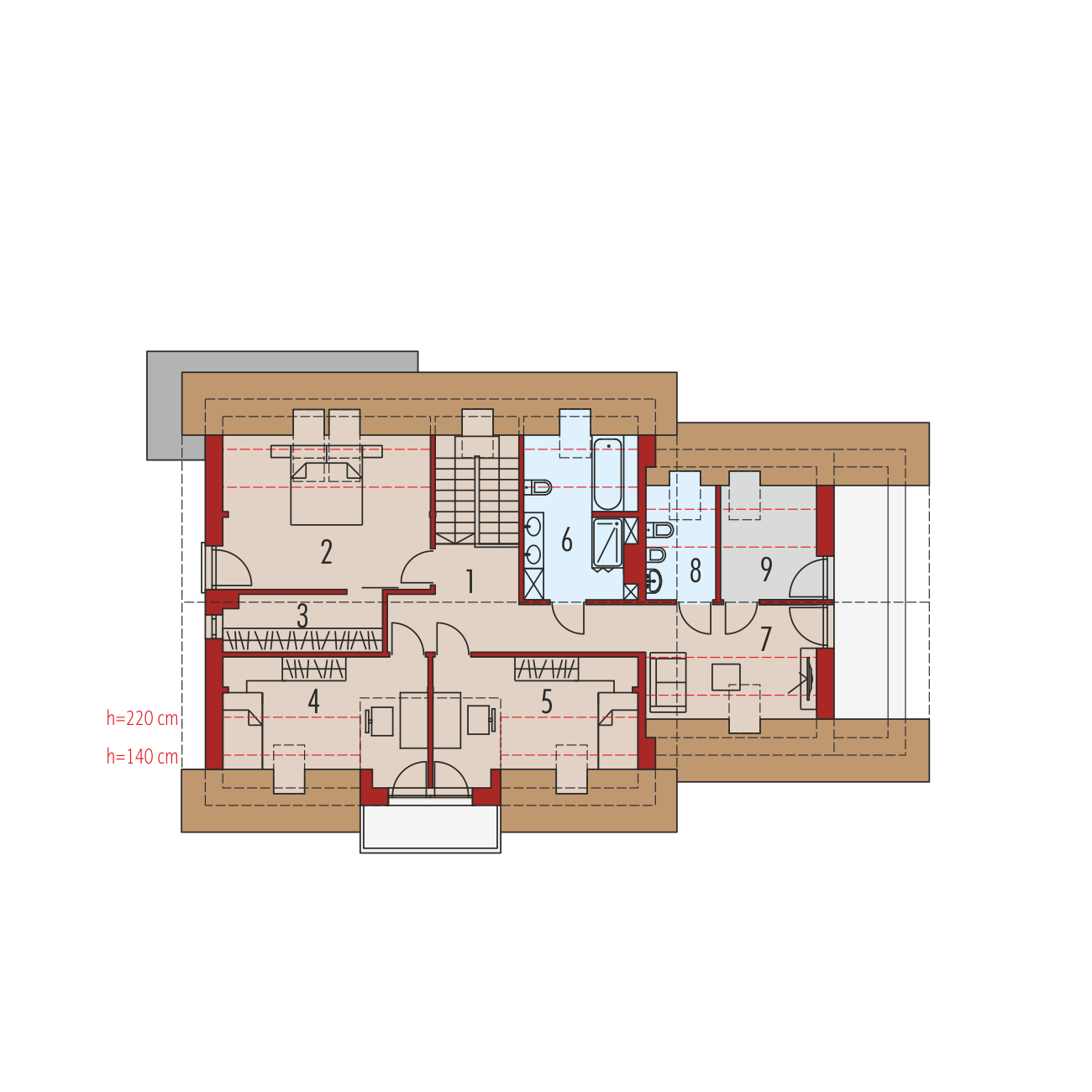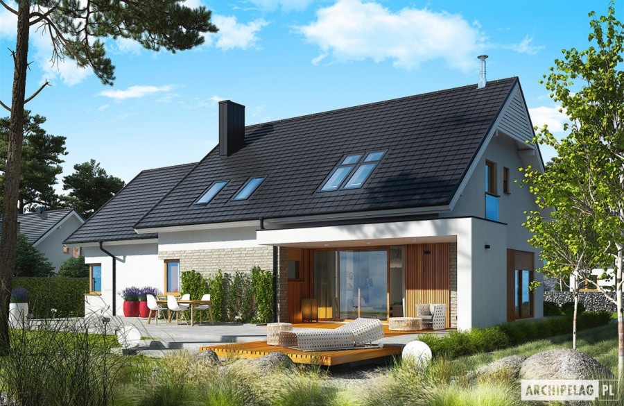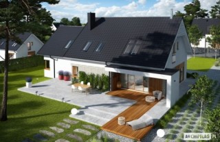 Charakterystyka: Dom parterowy z poddaszem użytkowym, niepodpiwniczony, z garażem dwustanowiskowym Przeznaczenie: Dom dla 3-5-osobowej rodzinyTechnologia i konstrukcja: Ściany zewnętrzne: murowane, dwuwarstwowe, beton komórkowy firmy Solbet 24 cm, ocieplenie styropian Termo Organika 20 cm Ściany wewnętrzne: nośne i działowe murowane, beton komórkowy firmy Solbet 24 cm i 12 cm Strop: międzypiętrowy gęstożebrowy Teriva Dach: konstrukcja drewniana, ocieplenie wełna mineralna 30 cm, dachówka ceramiczna płaska Bergamo firmy Röben Inne: schody wewnętrzne drewniane Rozwiązania instalacyjne: Ogrzewanie: kocioł gazowy kondensacyjny, rozprowadzenie ciepła: grzejniki Wentylacja: grawitacyjnaWykończenie: Elewacje: tynk cienkowarstwowy mineralny w kolorze TO-PA001 z palety firmy Termo Organika, okładzina ceramiczna typu Aarhus firmy Röben, okładzina drewniana Stolarka: aluminiowo-drewniana INNOVIEW firmy FAKRO Okna połaciowe: rozwiązania technologiczne i wyłaz dachowy firmy FAKRO Otoczenie: płyty tarasowe firmy Libet, system tarasowy ProDeck - deska kompozytowa Terra w kolorze orzechWersje - zapytaj o dostępność: - Katrina – z garażem jednostanowiskowym i bez garażu - Katrina (mała) G1 – mniejsza powierzchnia użytkowa, różne wersje garaży - Katrina II G1 ENERGO PLUS - inne wykończenie elewacji, instalacje energooszczędne: pompa ciepła, wentylacja mechaniczna, różne wersje garaży - Katrina III G1 ENERGO PLUS - inne wykończenie elewacji, instalacje energooszczędne: pompa ciepła, wentylacja mechaniczna, różne wersje garaży - odbicie lustrzaneIstnieje techniczna możliwość: - podpiwniczenia budynku - wykonania zabudowy bliźniaczej - wykonania budynku w technologii szkieletowejWarianty działek dla wersji domu z garażem jednostanowiskowym i bez garażu: