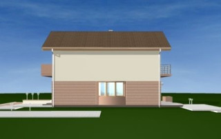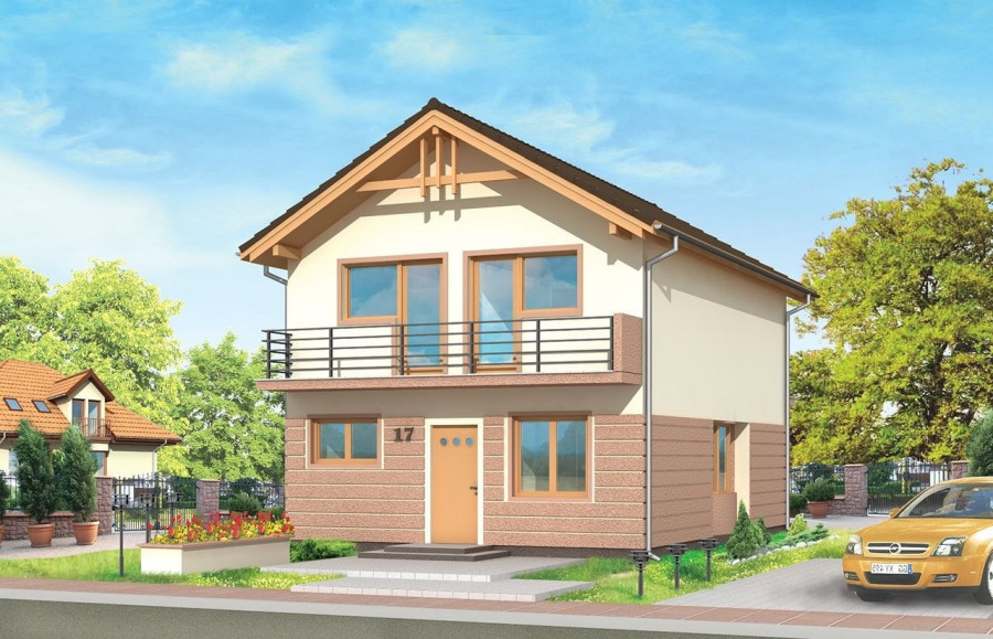 Projekt domu Dom z Piętrem to piętrowy budynek dla rodziny czteroosobowej o prostej bryle i bezpretensjonalnej architekturze. Pasujący na wąską działkę, szczególnie wśród istniejącej ścisłej zabudowy. Na parterze zaprojektowano dużą otwartą przestrzeń dzienną oraz pomieszczenia techniczne. Na piętrze mieszczą się trzy wygodne sypialnie - bez skosów - oraz łazienka i garderoba. Dostępne jest również odbicie lustrzane projektu domu Dom z Piętrem.