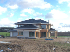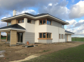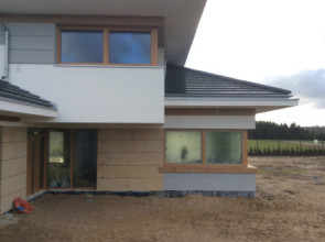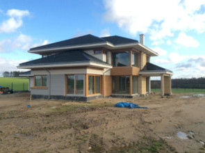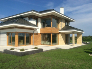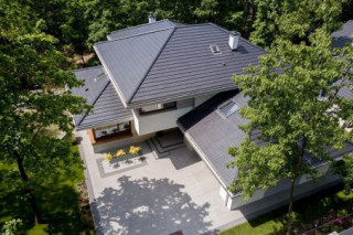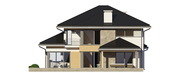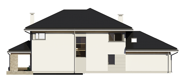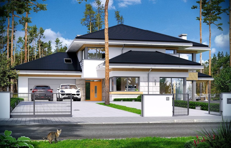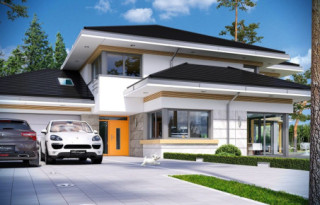 Projekt domu Dom z Widokiem 2 jest wariantową pomniejszoną wersją cieszącego się popularnością projektu Dom z widokiem. Dom został nieco zmniejszony w stosunku do swojego pierwowzoru. Powierzchnia została zmniejszona o niecałe 20%. Podobnie koszty realizacji - również udało się ograniczyć o jedną piątą budżetu. Projekt domu Dom z Widokiem 2 to nowoczesna miejska willa, o dynamicznej ciekawej architekturze, otwarta na ogród, z mnóstwem atrakcyjnych detali i ciekawą bryłą. Dobrze zestawione ze sobą materiały, detale i kolorystyka tworzą niepowtarzalne wrażenie komfortu, wygody i niezależności. Program użytkowy został nieco okrojony w stosunku do bazowego projektu, ale dom nic nie stracił na swojej funkcjonalności. Jego wnętrze nadal jest pełne przestrzeni. Wchodząc do wnętrza domu czujemy luz i rozkoszujemy się niczym nie ograniczonym komfortem. Na parterze zaprojektowano otwartą część dzienną, z salonem z pustką i otwarciem na antresolę na piętrze, z jadalnią, holem z reprezentacyjnymi schodami, oraz dużą kuchnią z wyspą. Wnętrze przedziela prostopadłościan spiżarni i zabudowy kuchennej. Do domu wchodzimy przez otwarty, przeszklony wiatrołap z szatnią. Na parterze dodatkowo mieści się kotłownia, wc, oraz garaż z pomieszczeniem magazynowo-gospodarczym. Na piętrze zaprojektowano trzy sypialnie, z oddzielnym apartamentem rodziców z własną łazienką i garderobą, ogólnodostępną łazienkę, oraz strych - pralnię/suszarnię, lub po prostu magazyn, albo dodatkowy pokój. Dom z Widokiem 2 jest energooszczędny - zastosowano w nim bardzo dobre ocieplenia i instalacje. Łatwo można projekt dostosować do standardu NF40. Budynek ma zwartą bryłę. Jest nieco tańszy w realizacji od projektu bazowego. Zapraszamy do zapoznania się z pełną ofertą pracowni MG Projekt tej serii: Dom z Widokiem, Dom z Widokiem 2, Dom z Widokiem 2C, Dom z Widokiem 3, Dom z Widokiem 3F, Dom z Widokiem 4, Dom z Widokiem 5, Dom z Widokiem 6, Dom z Widokiem 6B, Dom z Widokiem B, Dom z Widokiem E.