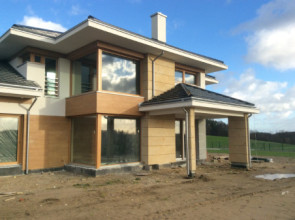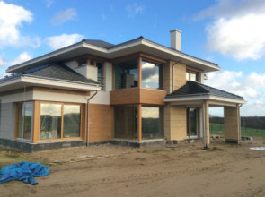 Lubie domy z lukarnami i wykuszami. Fajne urozmaicenie nawet jak dom jest maly. Do tego kolorki super. Ale garaż by się przydał. Jest gdzieś na archido wersja z garażem? Tylko koniecznie z takim wykończeniem!